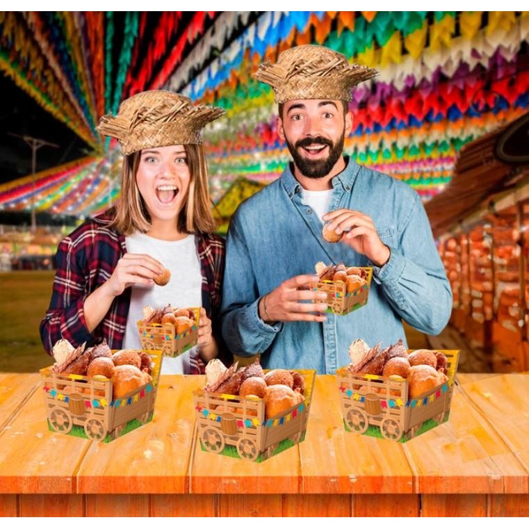 Cestinha Festa Junina Cachepot Carroça Decoração de Mesa Sertão