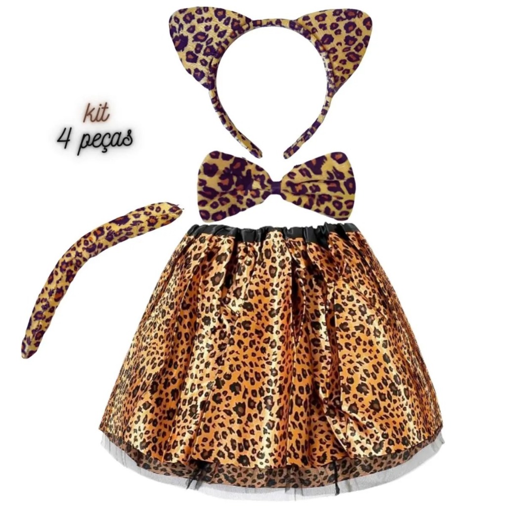 Fantasia Oncinha Carnaval Feminina Adulta kit Com 4 Peças