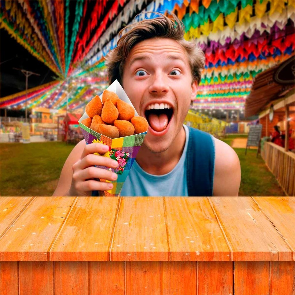 Embalagem Cone Para Salgados Fritas E Porções De Festa Junina