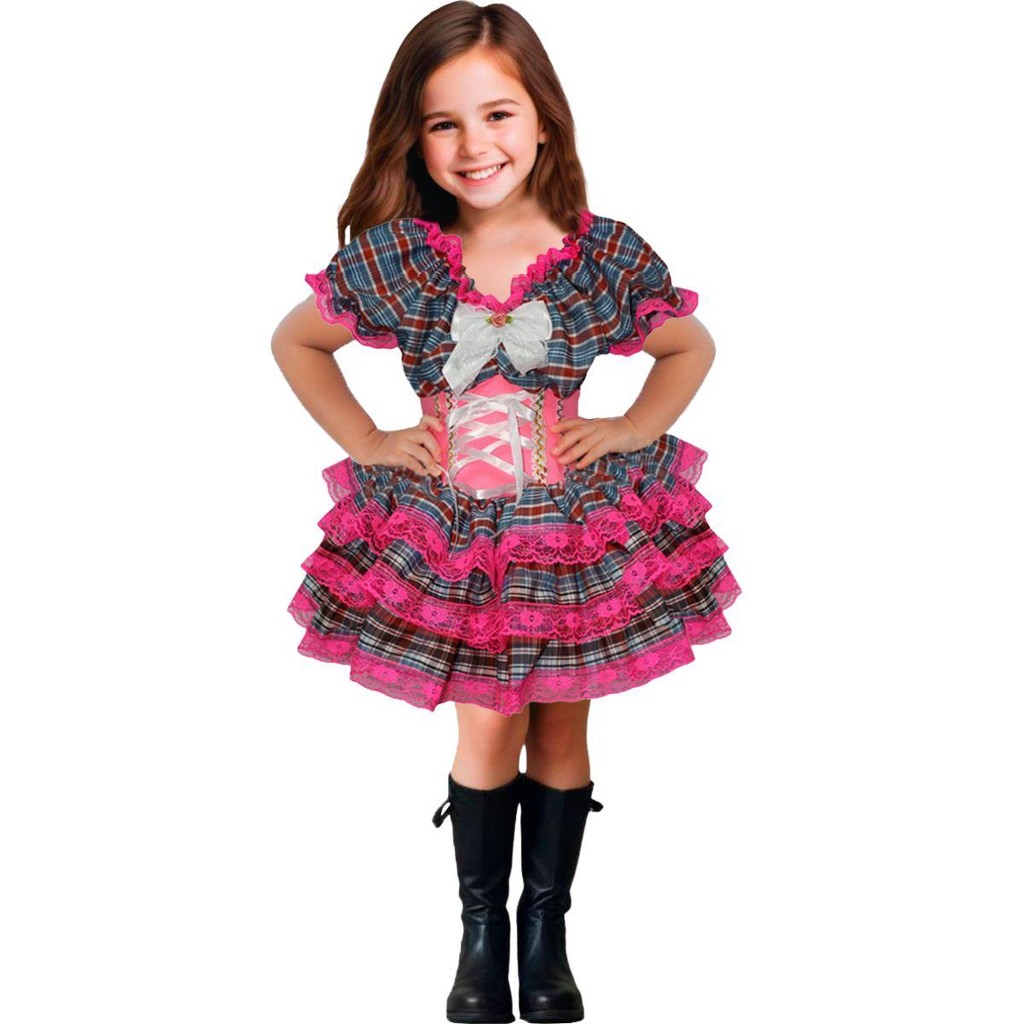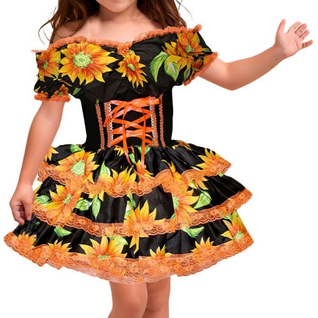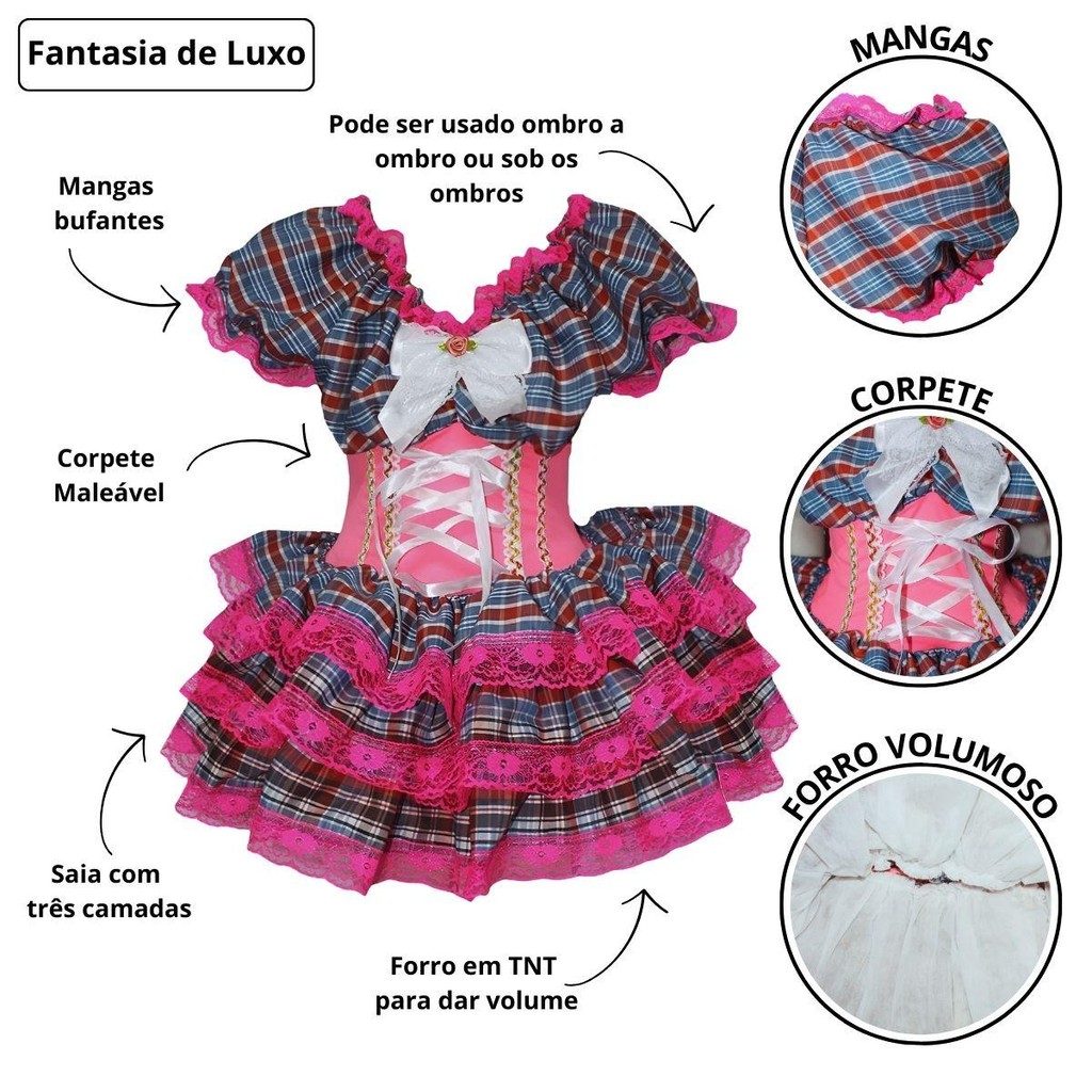 Vestido Infantil de Festa Junina Luxo Anarriê Super Rodado Acinturado pra Meninas de 3 a 12 Anos