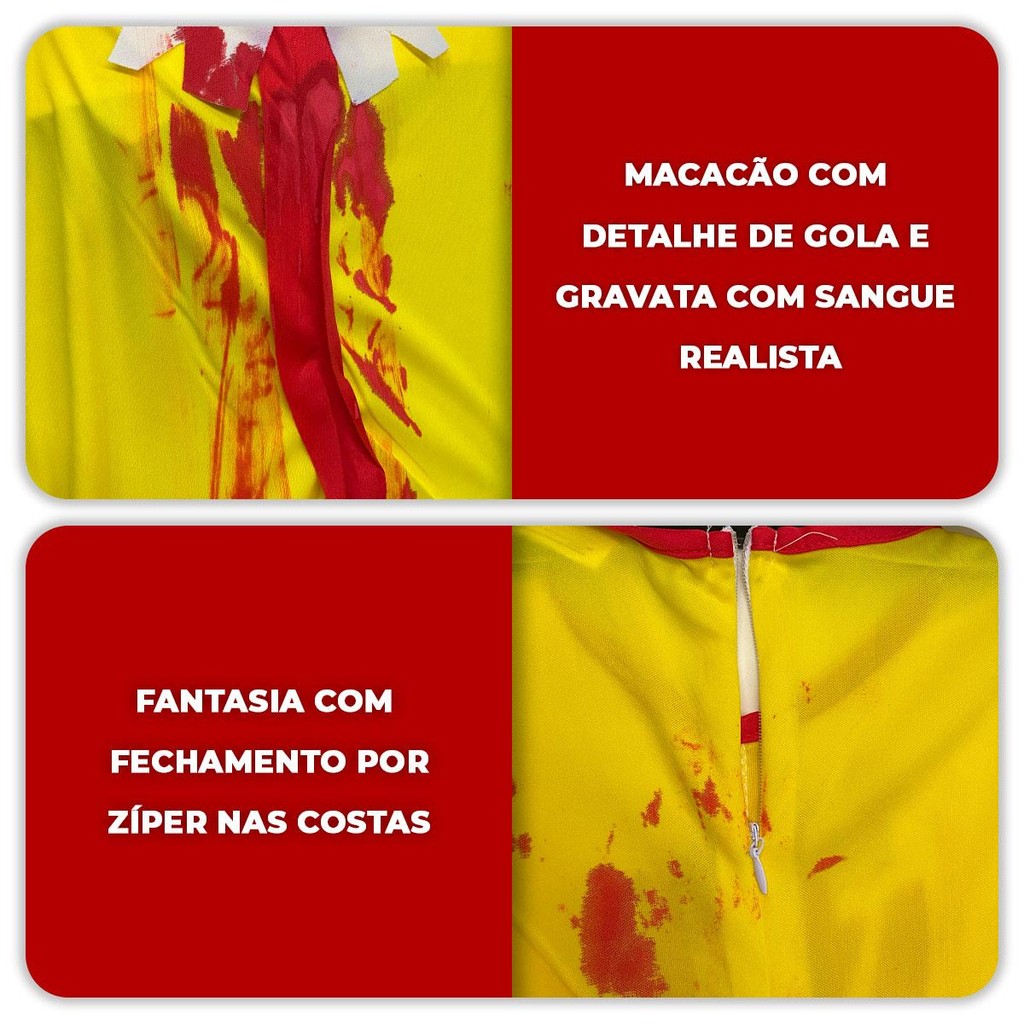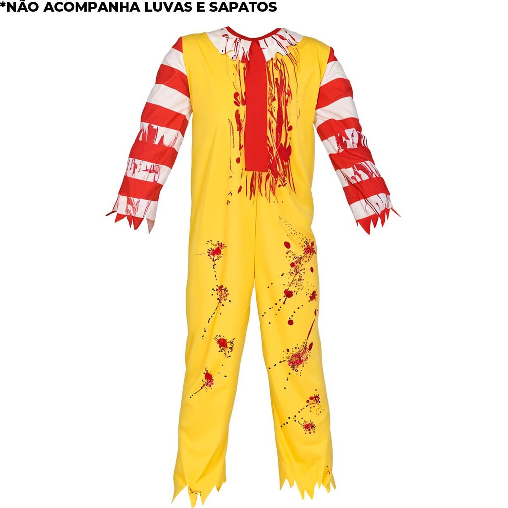 Fantasia de Terror Infantil pra Meninos de Halloween Roupa de Palhaço Assassino Cosplay Amarelo e Vermelho