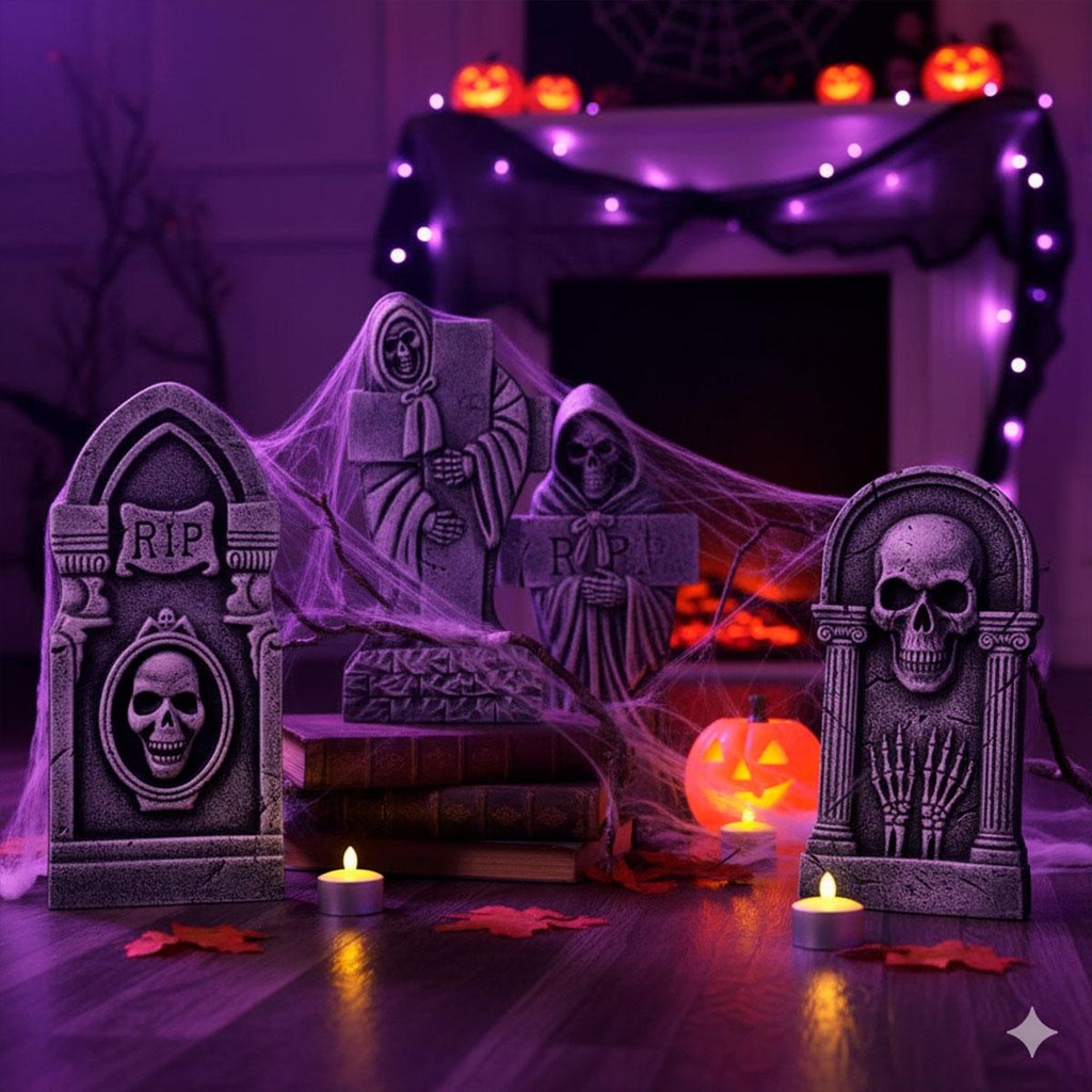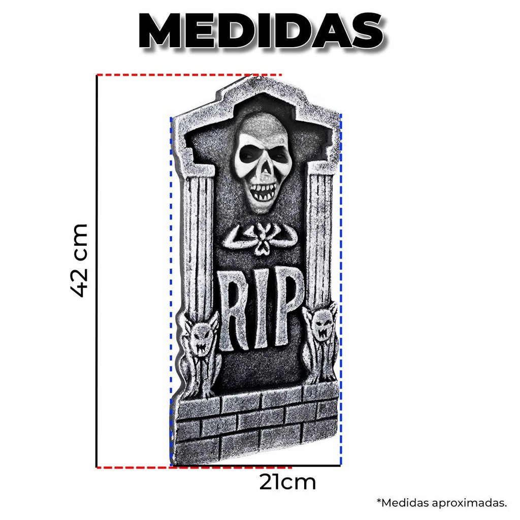 Kit 4 Lápides Halloween Grande Realista com Caveiras Auto Relevo Decoração Festa Cemiterio Casa Quintal