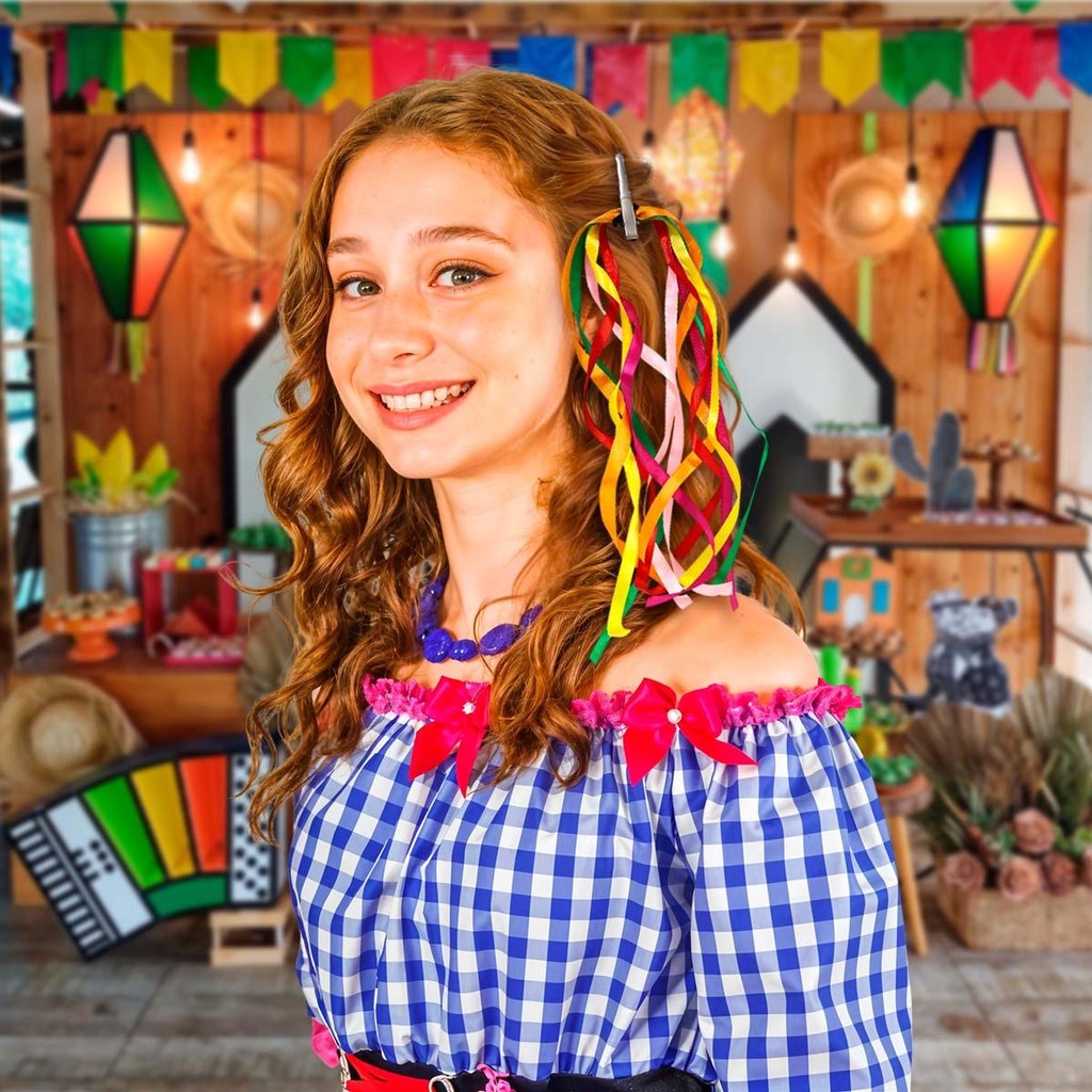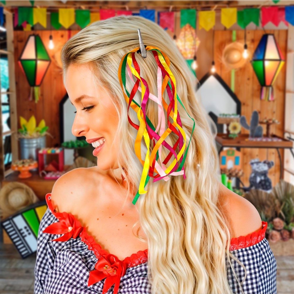 Enfeite de Cabelo pra Festa Junina Bico de Pato com Fitilhos Coloridos Rabico Caipira