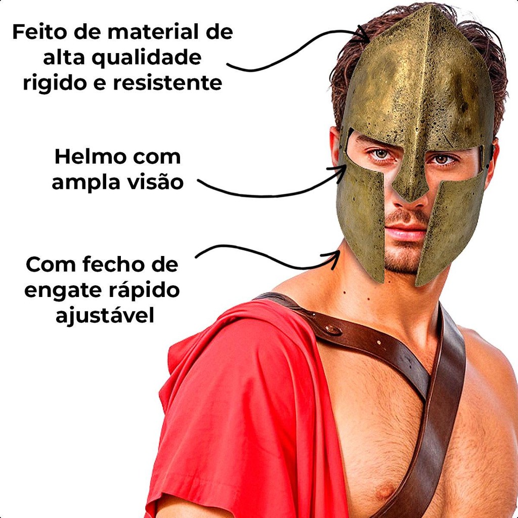 Máscara Gladiador Espartano Dourada pra Fantasia Cosplay Masculina
