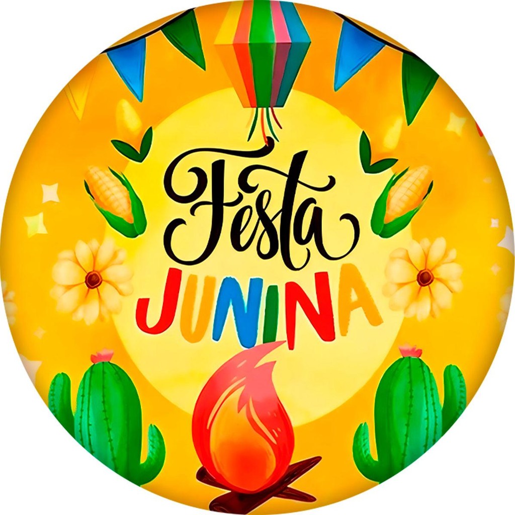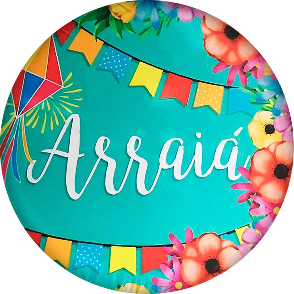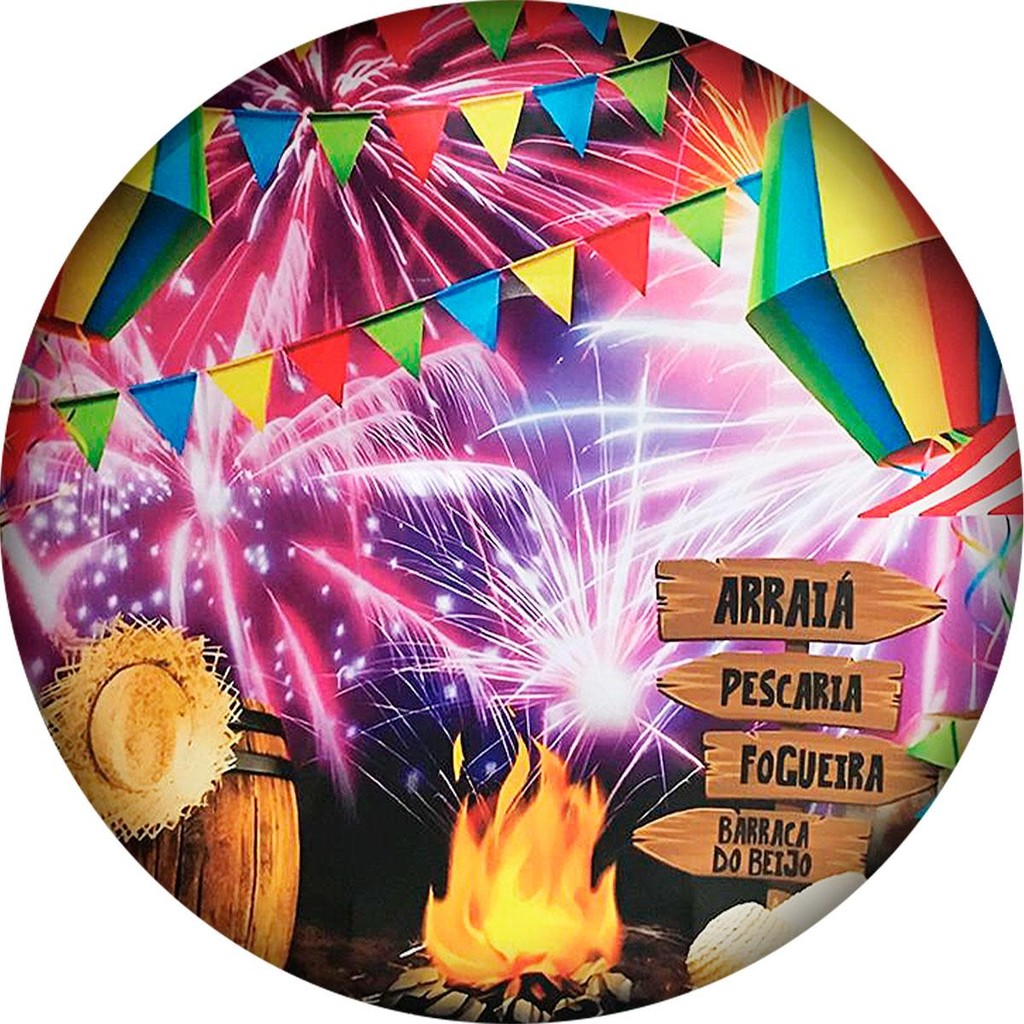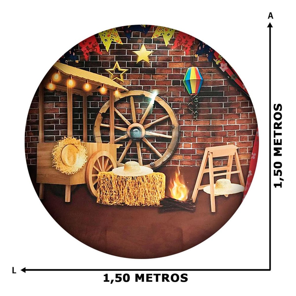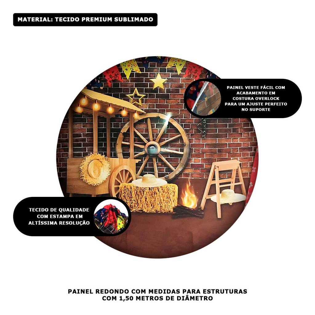 KIT Painel Festa Junina Redondo 3D Sublimado Com Elástico 1,5 metros + Suporte Bambolê Marrom