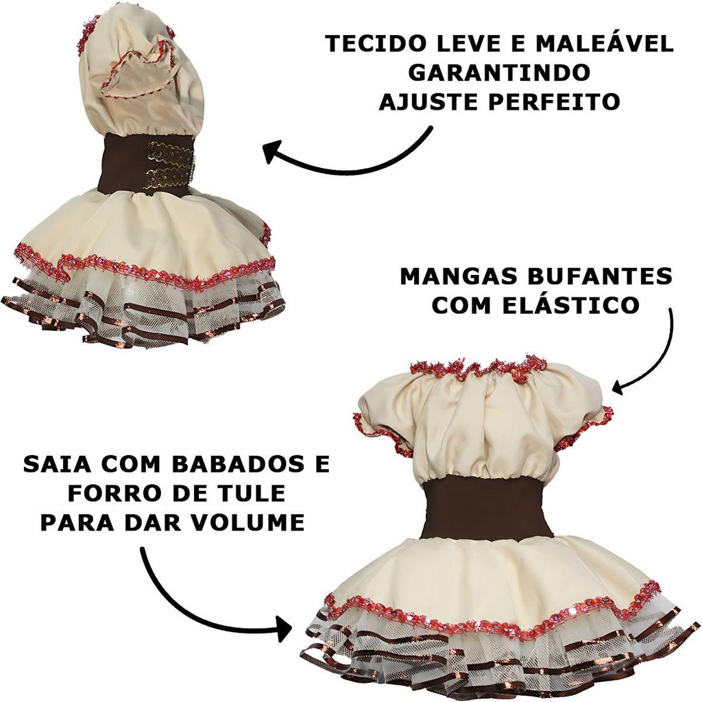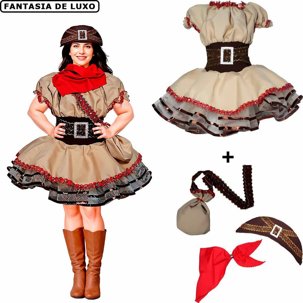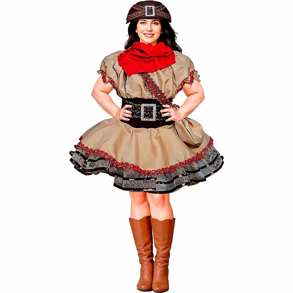 Fantasia Maria Bonita de Festa Junina Plus Size Feminina Vestido Cangaceira Acinturado Completo de Luxo