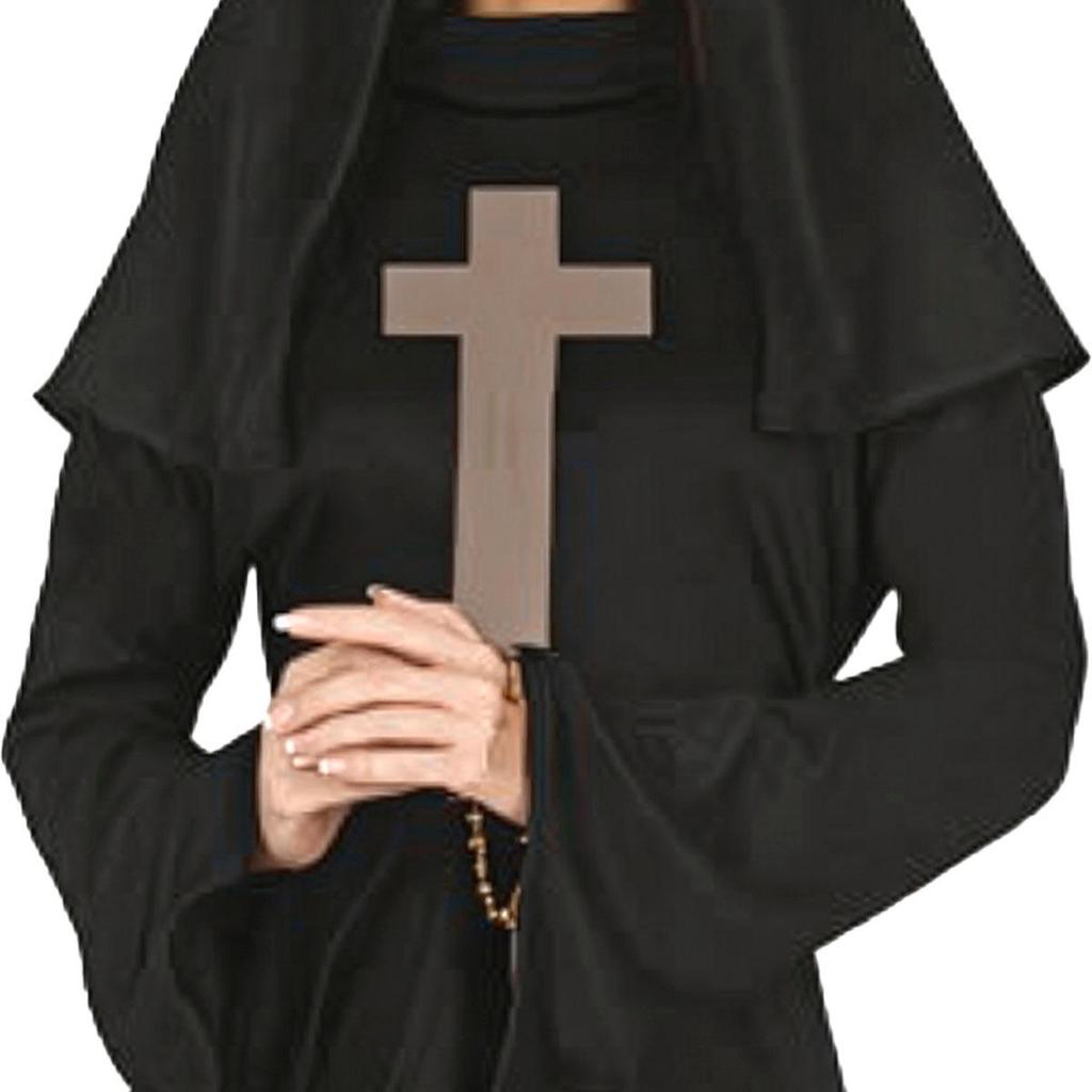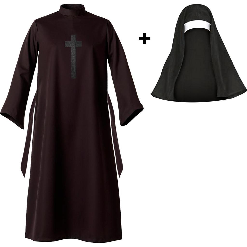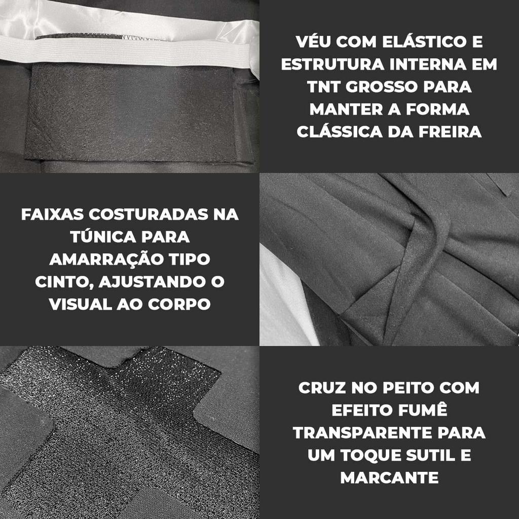 Fantasia Halloween Feminina Adulta Freira Valak do Mal de Luxo Vestido Preto Longo com Véu