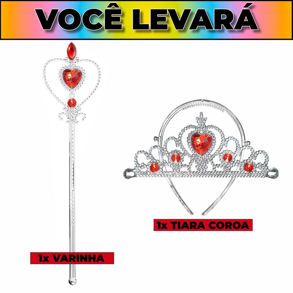 Kit Coroa e Varinha Magica Acessórios pra Fantasia de Princesas