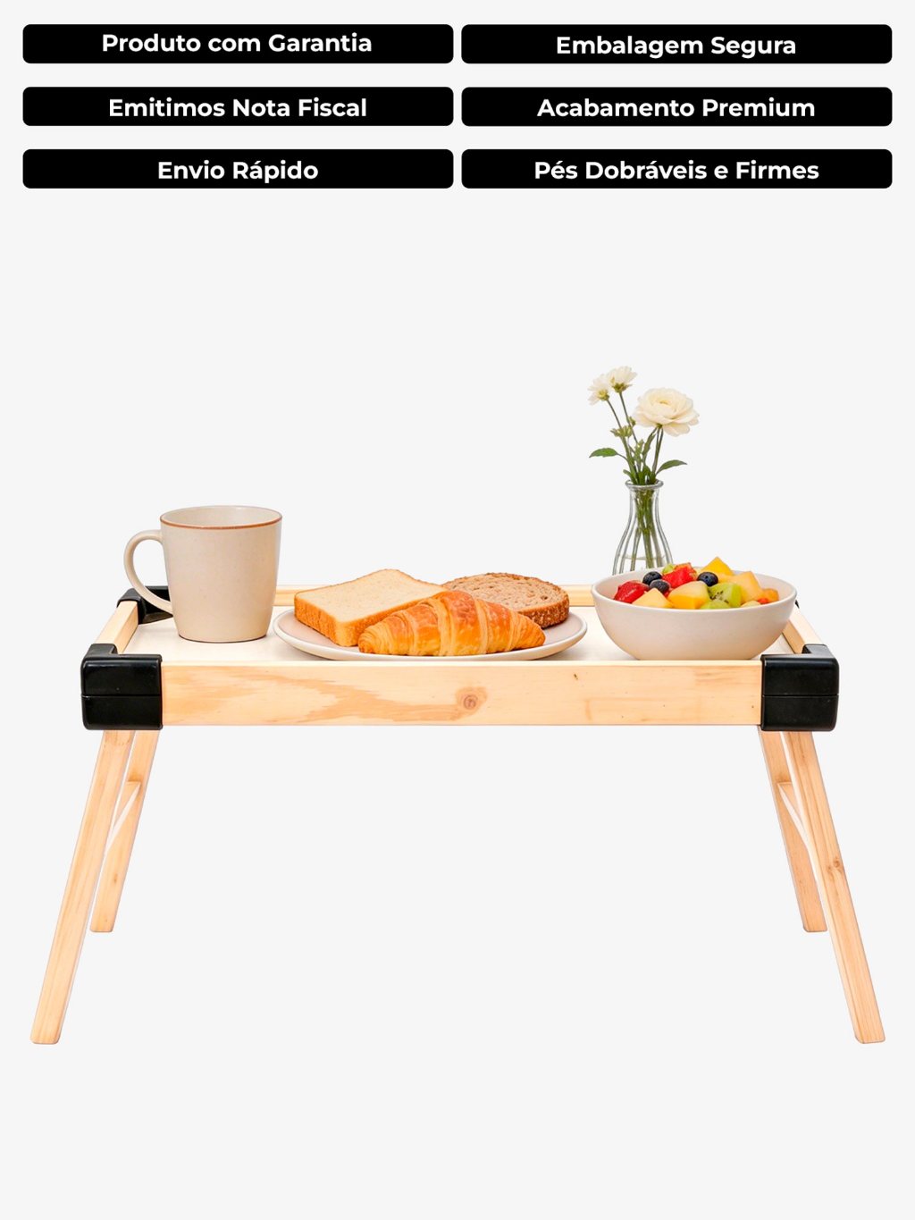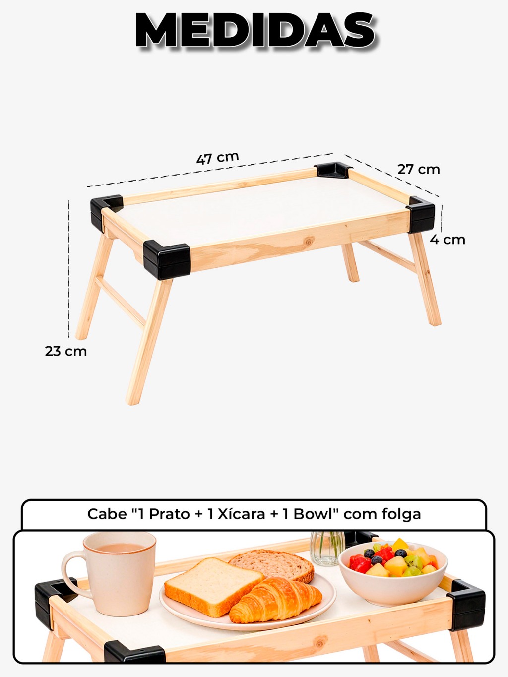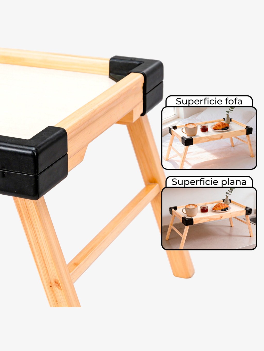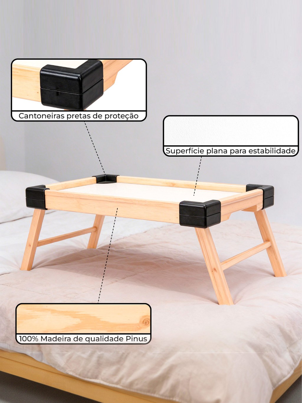 Bandeja Café da Manhã na Cama Grande com Pé Dobrável Multiuso Forte Infantil e Adulto com Quina Arredondada