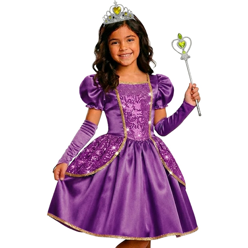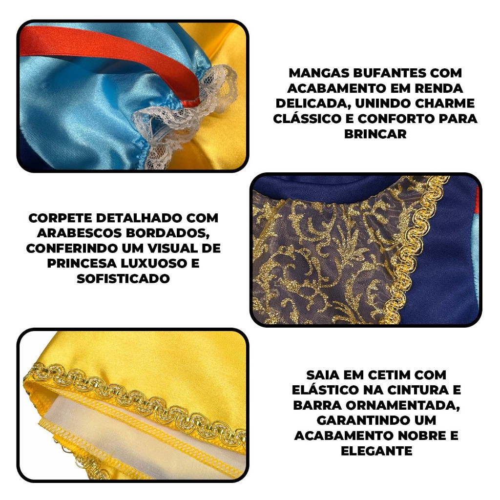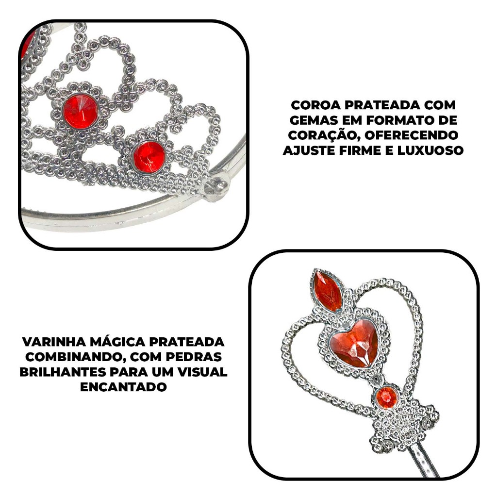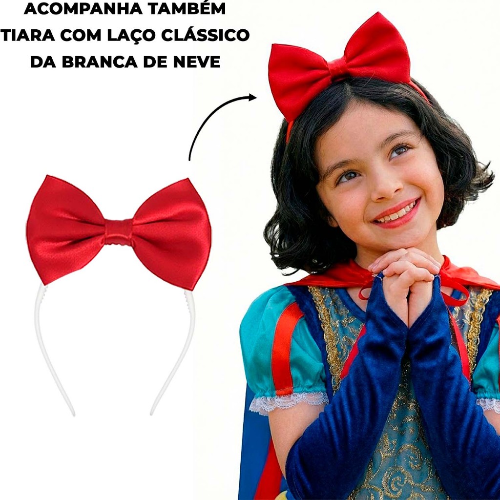 Fantasia Princesa Branca Neve Capa Luva Varinha Coroa Tiara