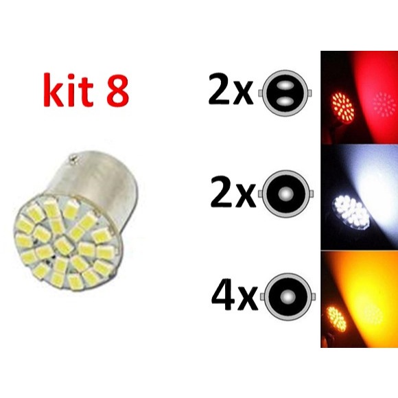 Kit 8 Lâmpadas 22 Led traseira freio lanterna seta re Ba15s 1 Polo P21w 1156 led automotivo FREIO