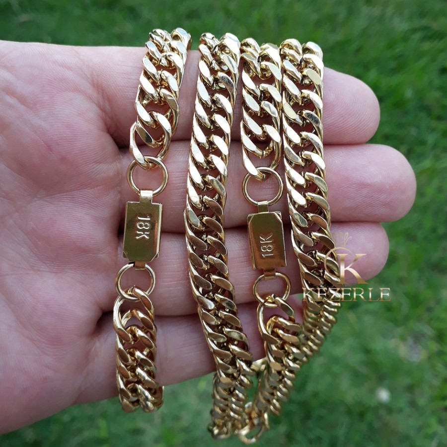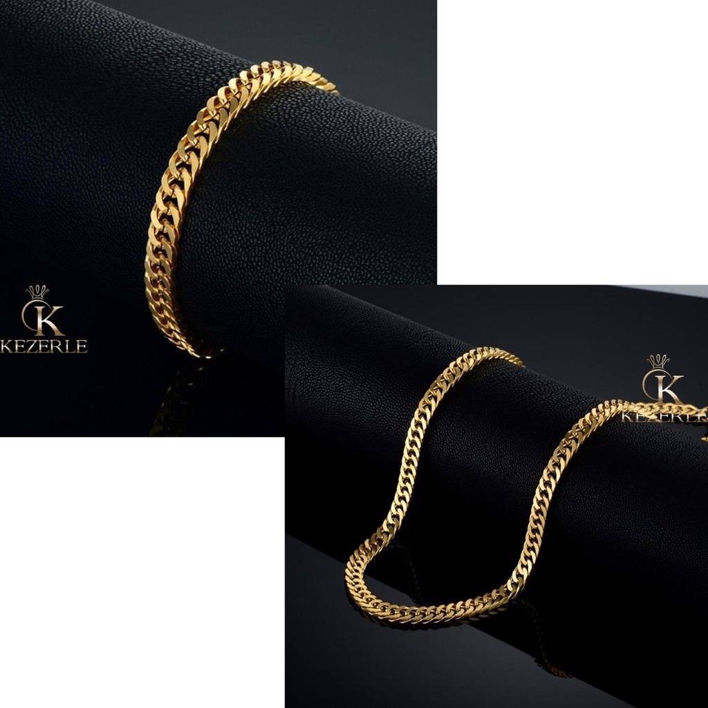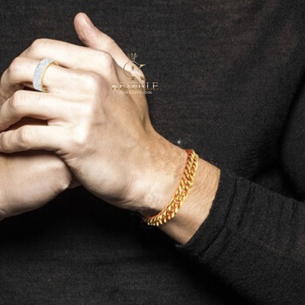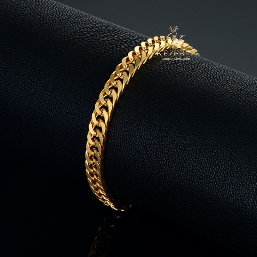 Pulseira + Corrente Aço Folheada Ouro 18k Aço73+Aço74 Aço77