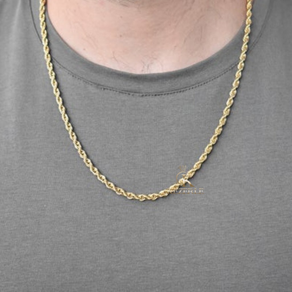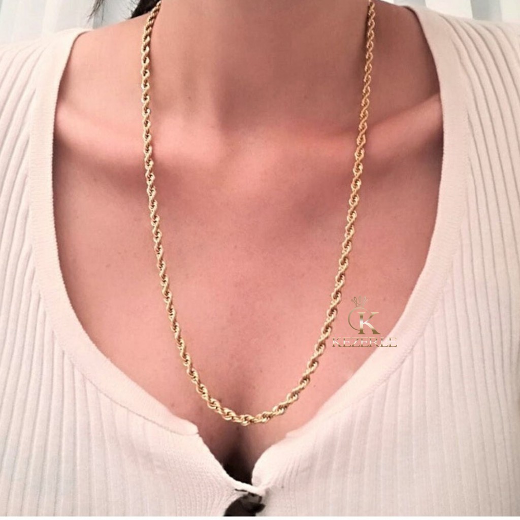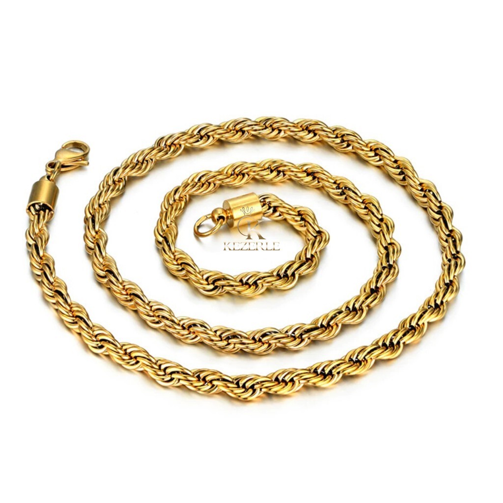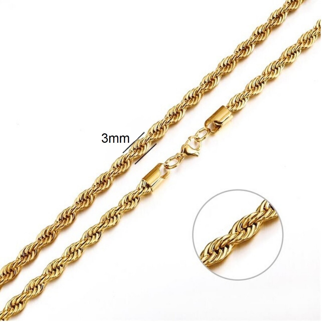 Corrente Cordão Aço Folheado A Ouro 18K 60cm X 3mm Aço67