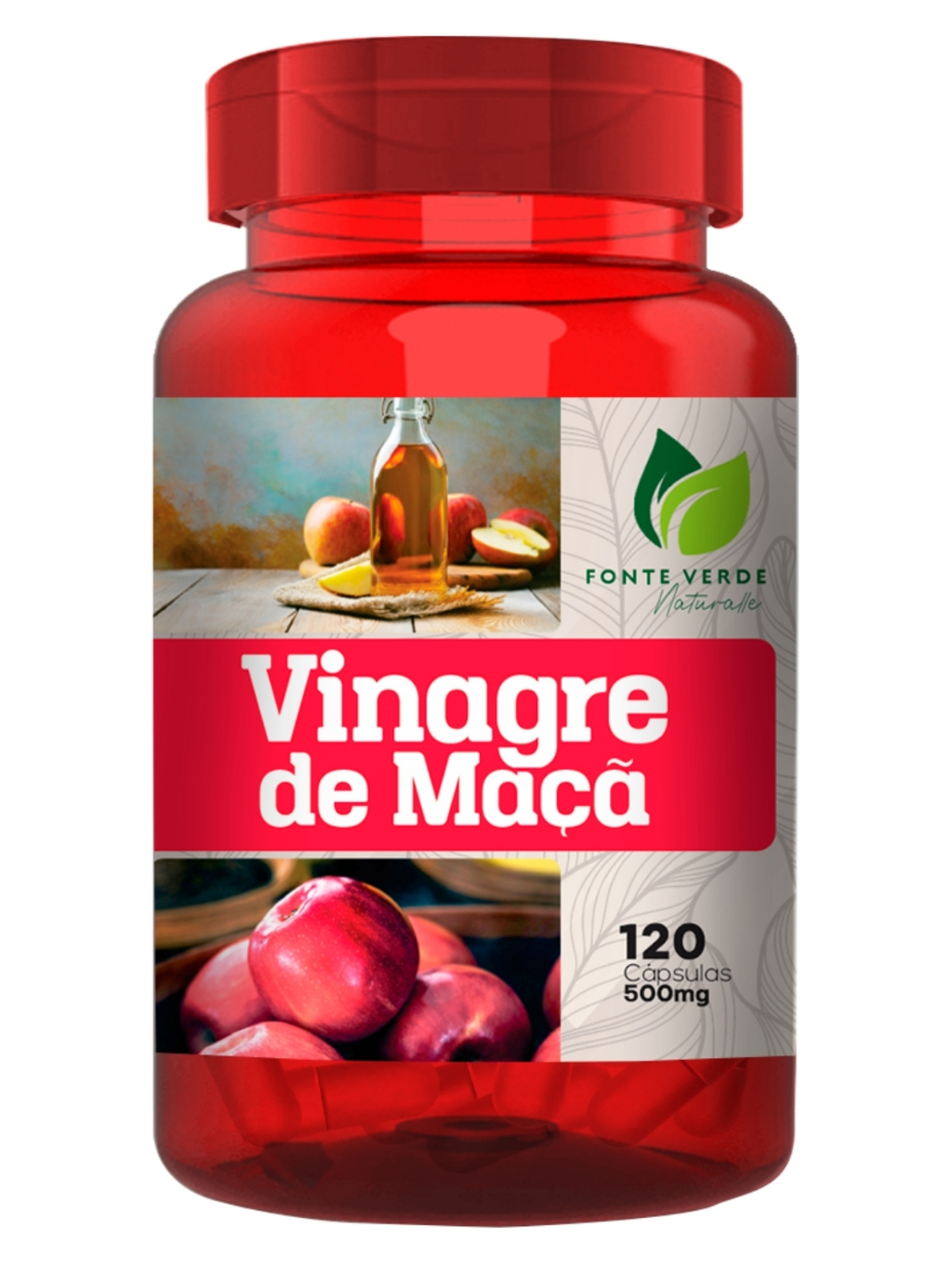 Vinagre de Maçã em Cápsulas 100% Natural 120 Cáps - Fonte Verde