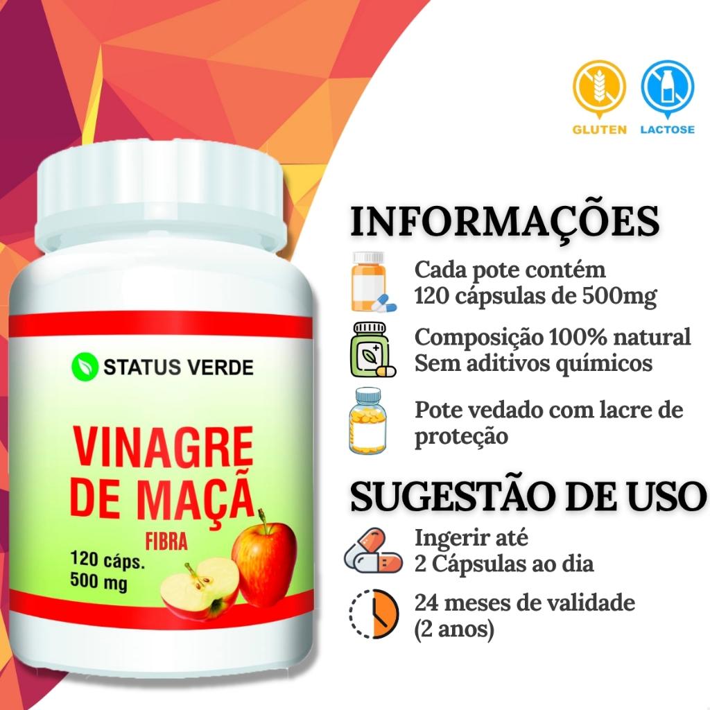 2 Potes Vinagre De Maçã Organico em Cápsulas - Kit 240 Cáps de 500mg