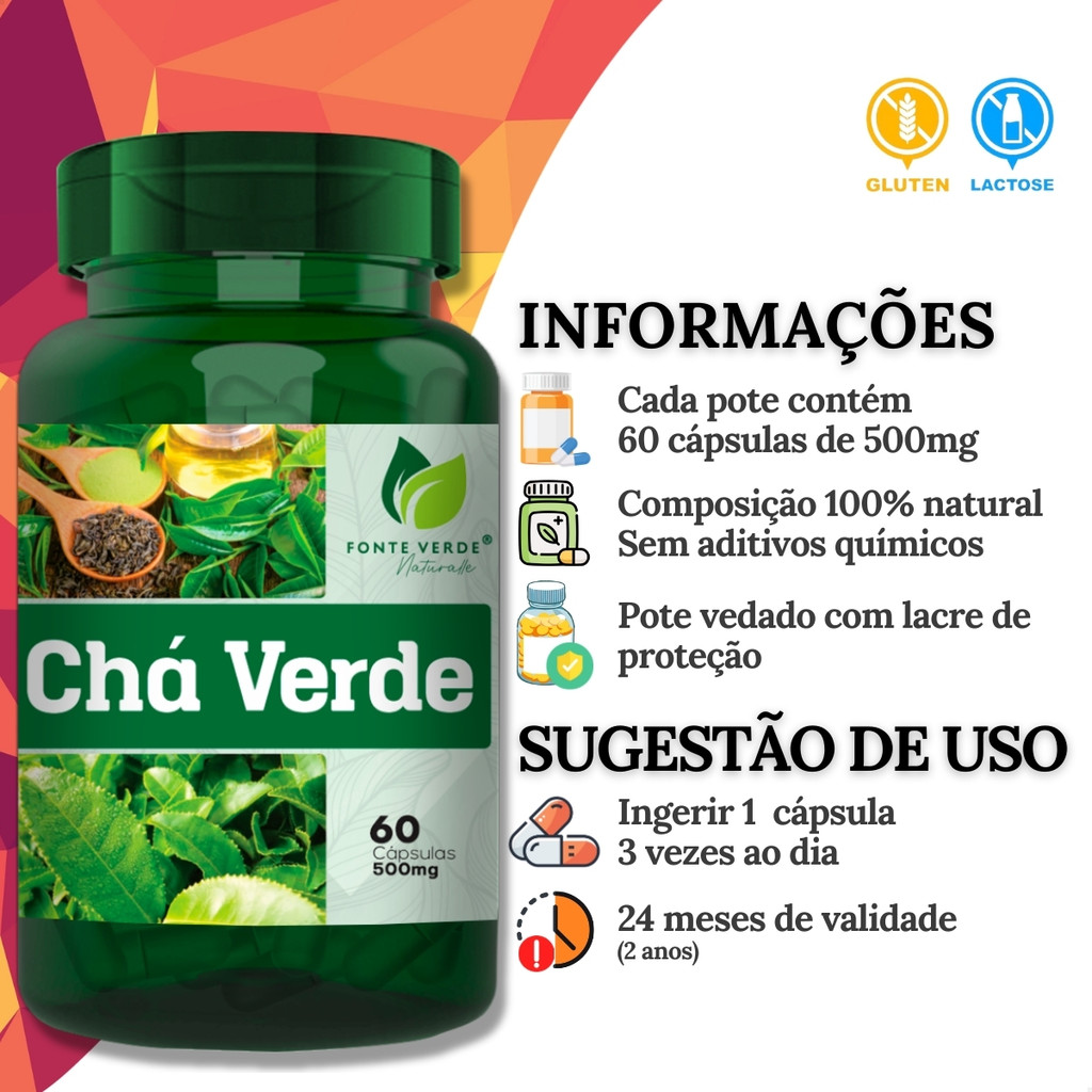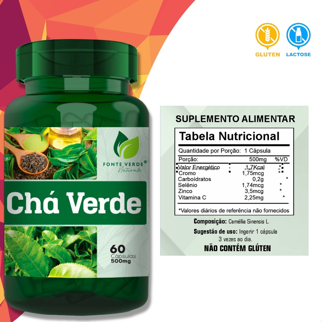 Chá Verde 100% Natural 120 Cápsulas - Fonte Verde