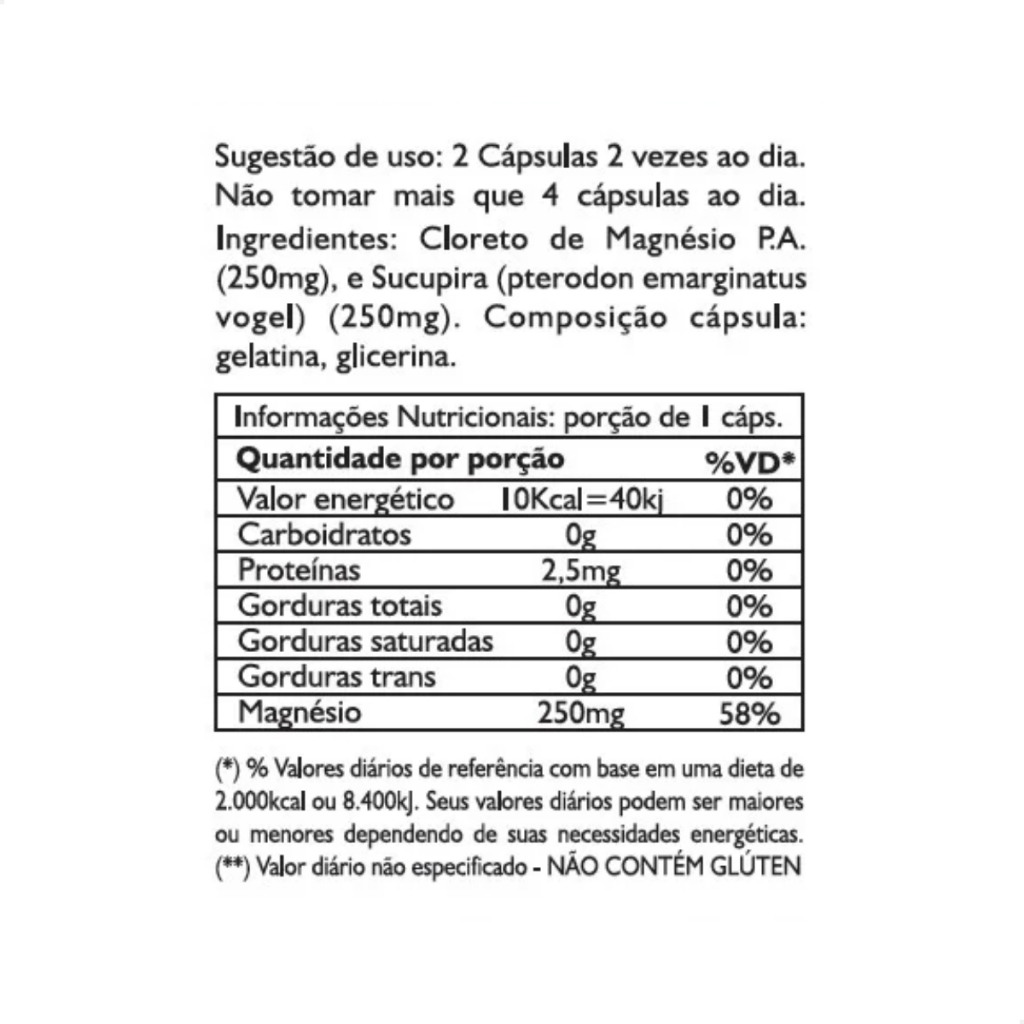 Cloreto de Magnésio P.a + Sucupira - 120 Cáps de 500mg