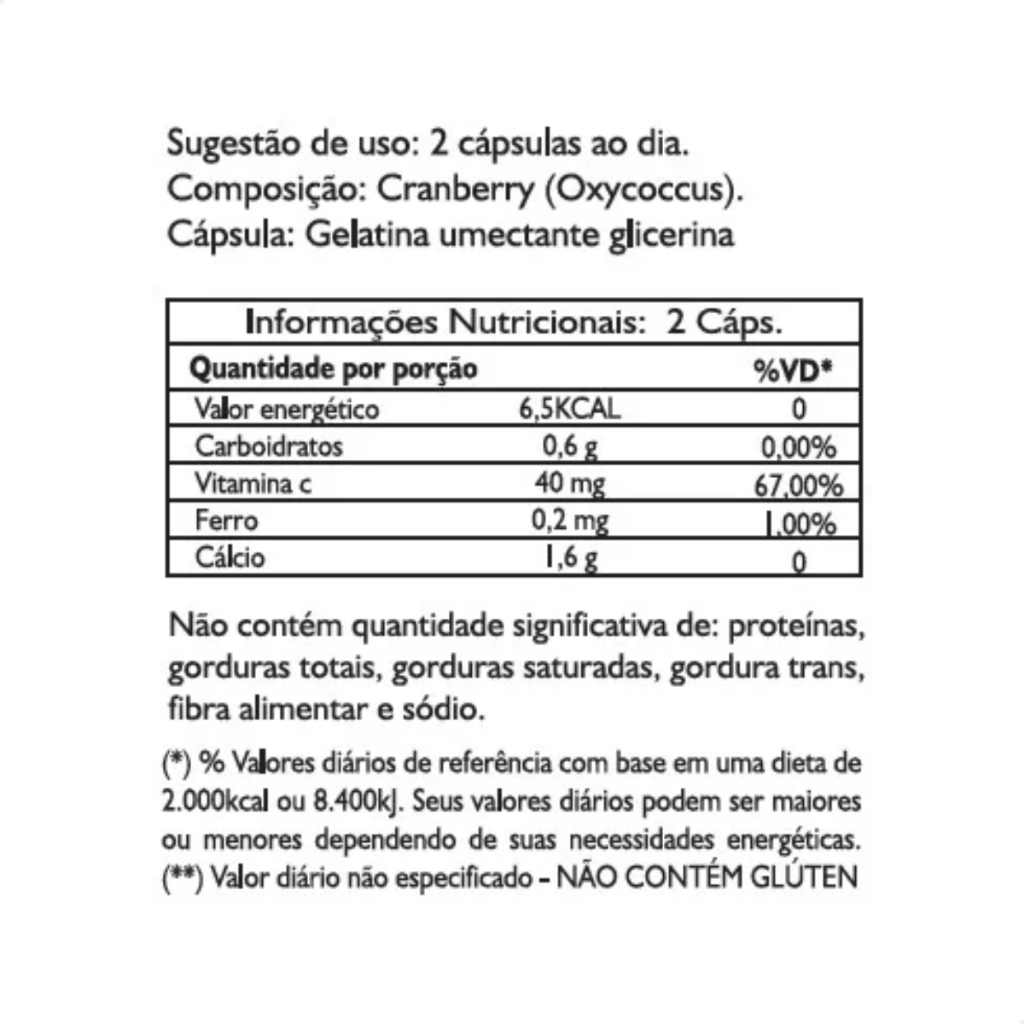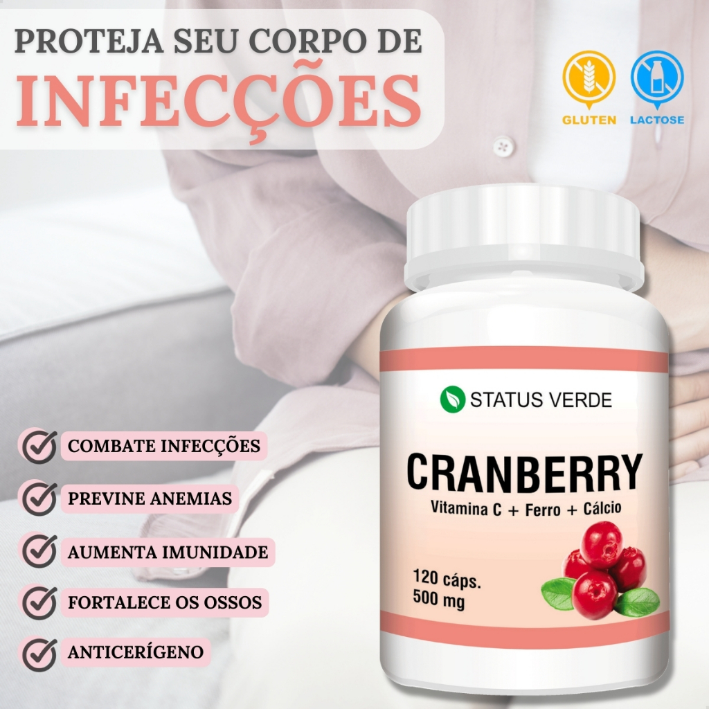 Cranberry + Vitamina C + Ferro + Cálcio - 120 Cáps de 500mg