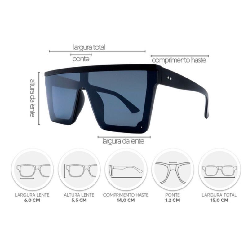 Oculos de Sól Feminino Masculino Oversized Mascara Quadrado Grande Uv400