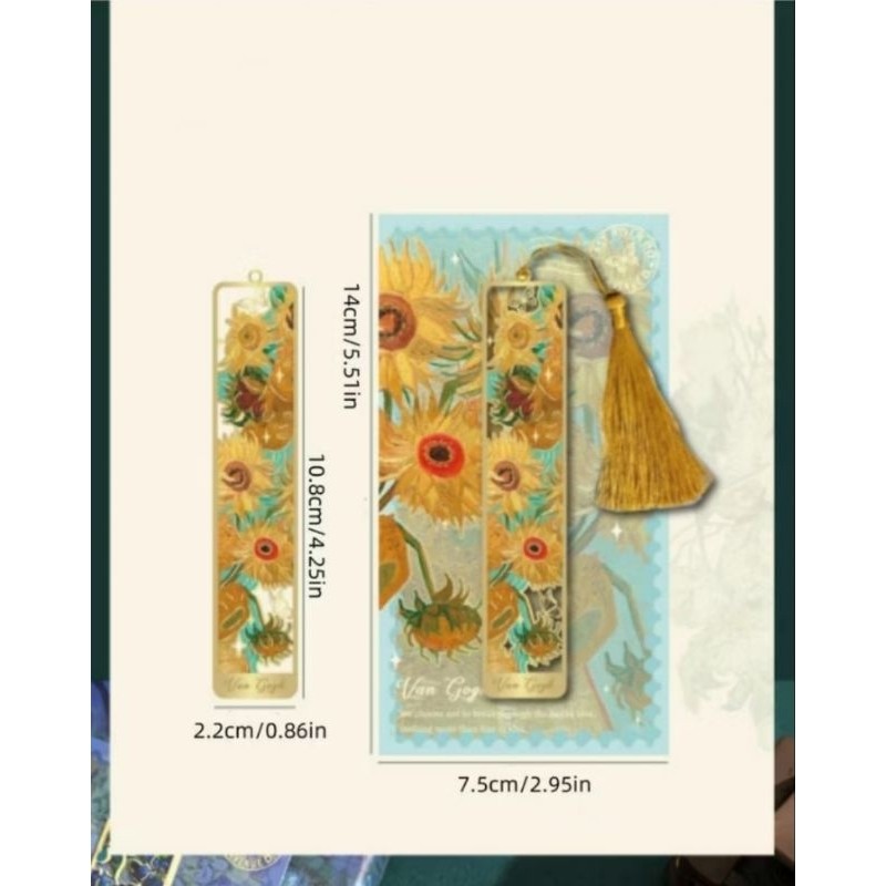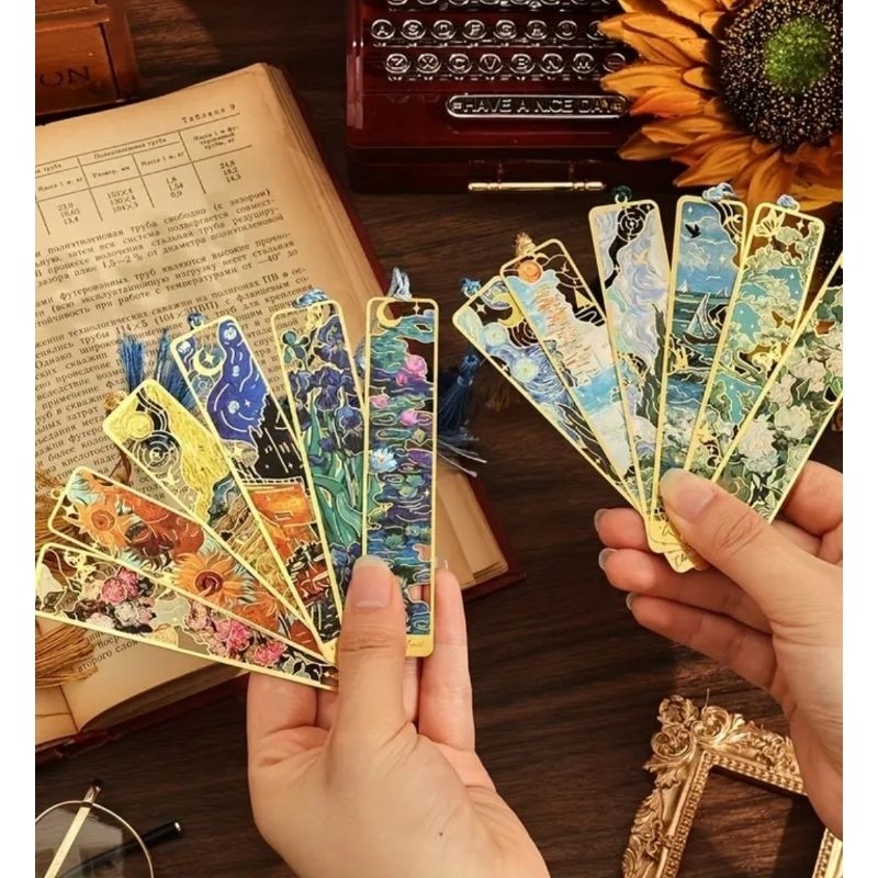 Kit 1/2/3 Marcador de Páginas Livros de Metal Van Gogh ou Monet para leitura escritório escola