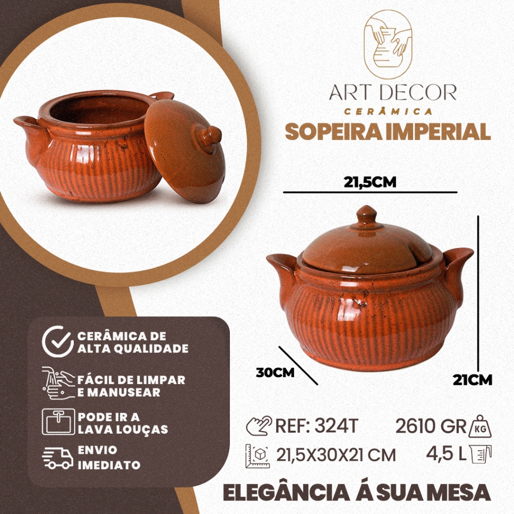 Sopeira Imperial de Cerâmica 4,5 Litros Louça Decoração Sopas Feijoada Mesa Posta Restaurante