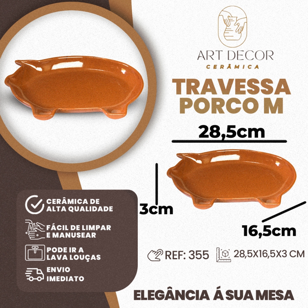 Petisqueira Porco Média Em Cerâmica Louça Buffet Travessa