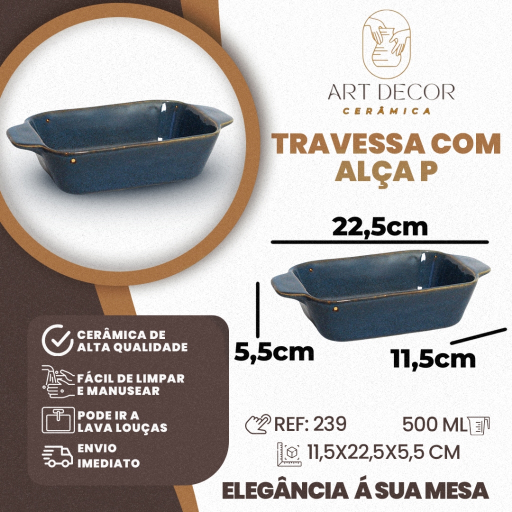 Travessa Pequena Com Alça Retangular Cerâmica Louça