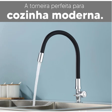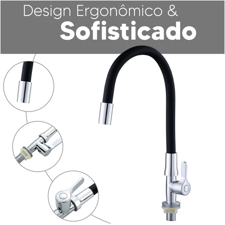 Torneira Cozinha Moderna Flexível Bancada Gourmet 1/4 Volta Inox Silicone