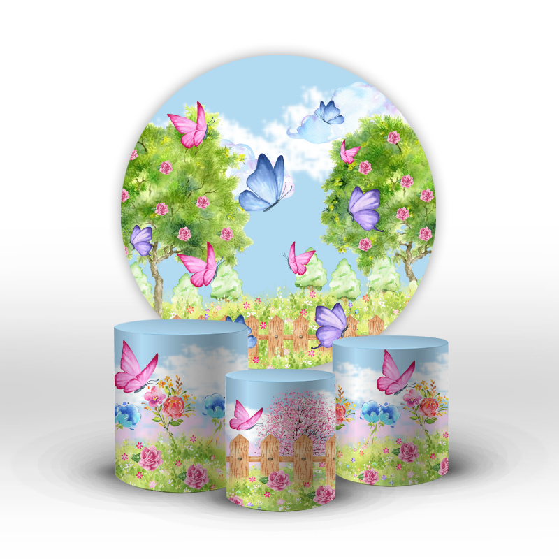 Kit Painel E Trio De Cilindro Borboletas Tecido Sublimado C/elástico