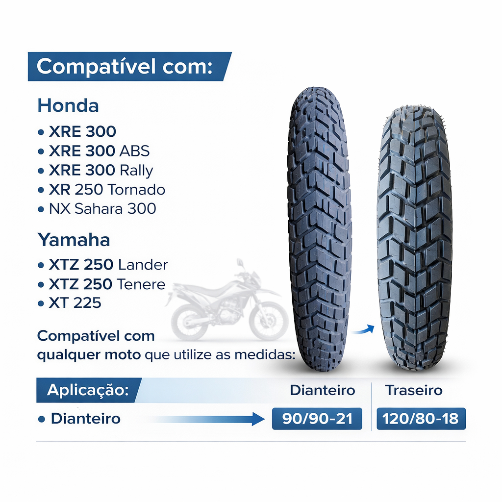 Par Pneus Trail 90/90-21 + 120/80-18 Compatível XRE300 Lander Tenere XT225 XTZ250