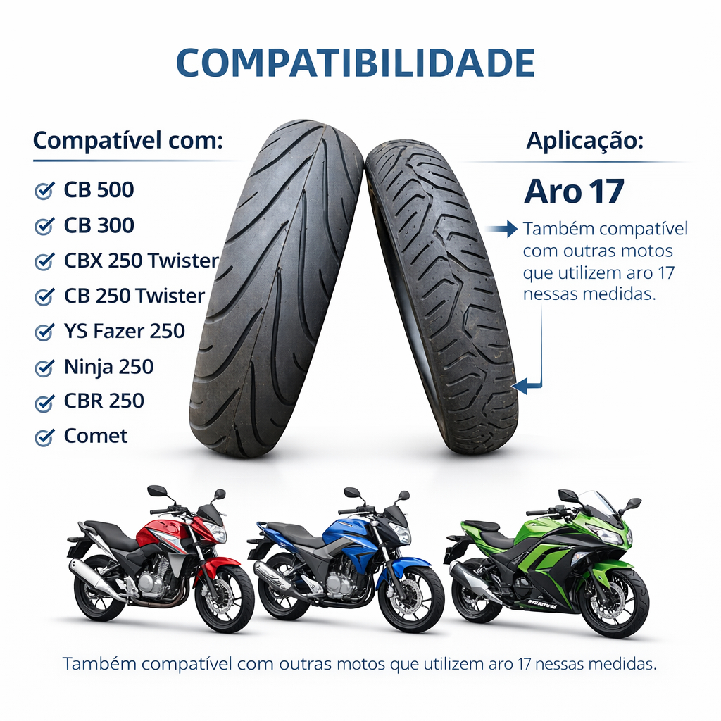 Kit 2 Pneus 140/70-17 + 100/80-17 CB 500 Fazer 250 Ninja 250 CBR 250 Twister CB 300