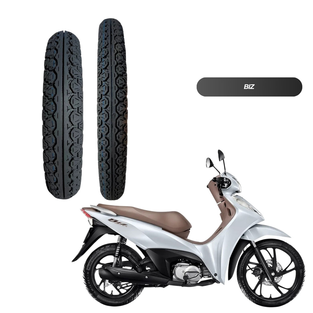 Kit 2 Pneus para Biz 125 - 80/100-14 e 60/100-17 Dianteiro e Traseiro