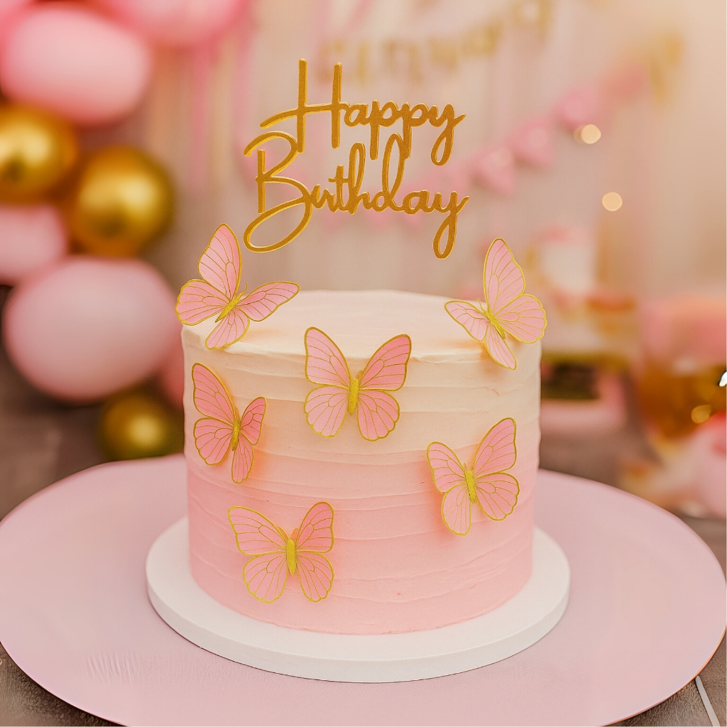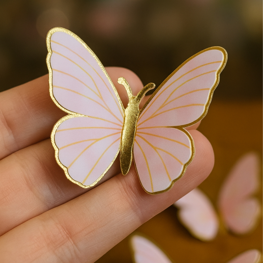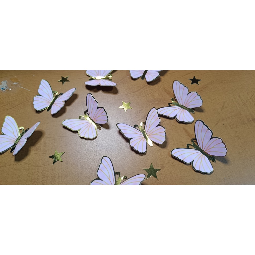 Kit 20 Borboleta Dourada e Rosa 5cm / Borboletas Decorativas para Bolo, Festas, Lembranças e Buquês