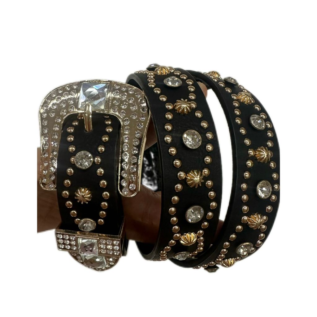 Cinto Feminino Country em Strass Brilhos Ocidental Cowboy Tachas Blogueira Moda Balada Festival