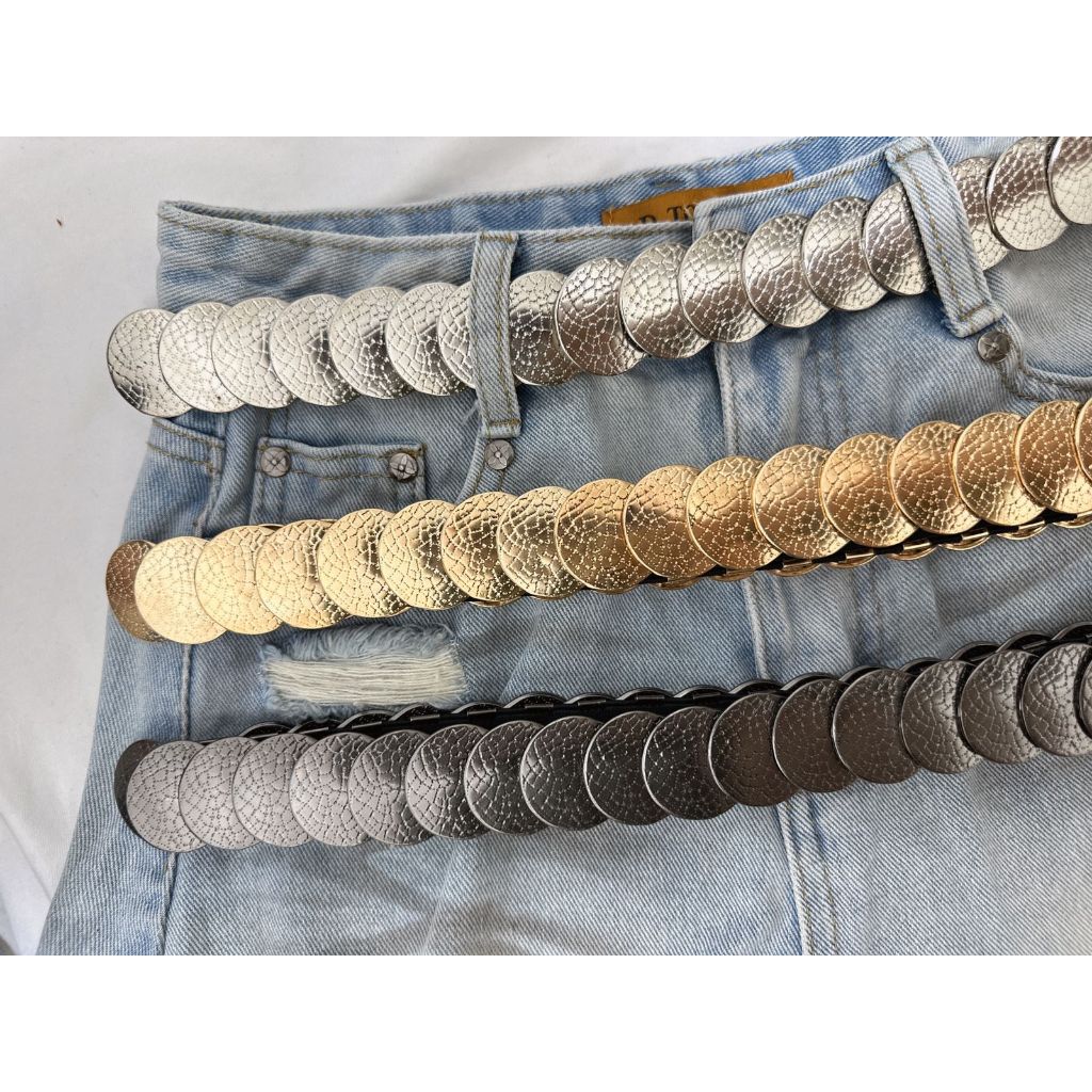 Cinto Elástico Medalhas Douradas Removível com Fechamento em Gancho Design Modelo