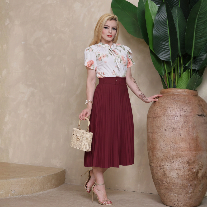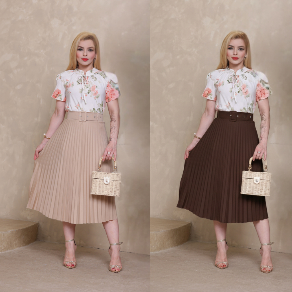 Saia Mídi Plissada Feminino Com Cinto Moda Evangélica