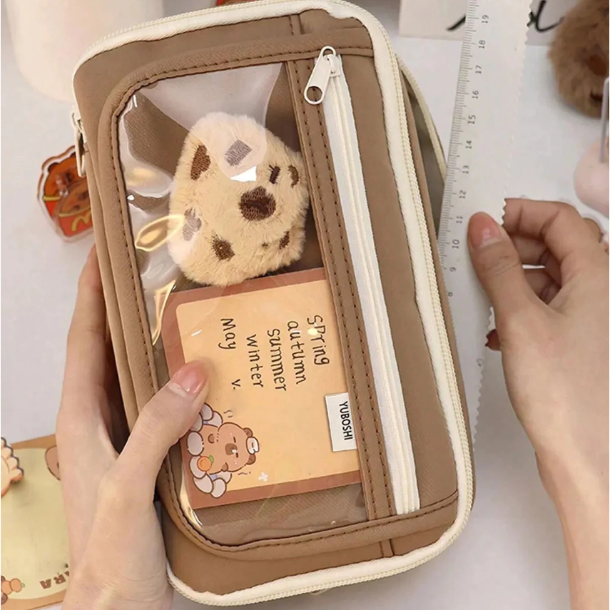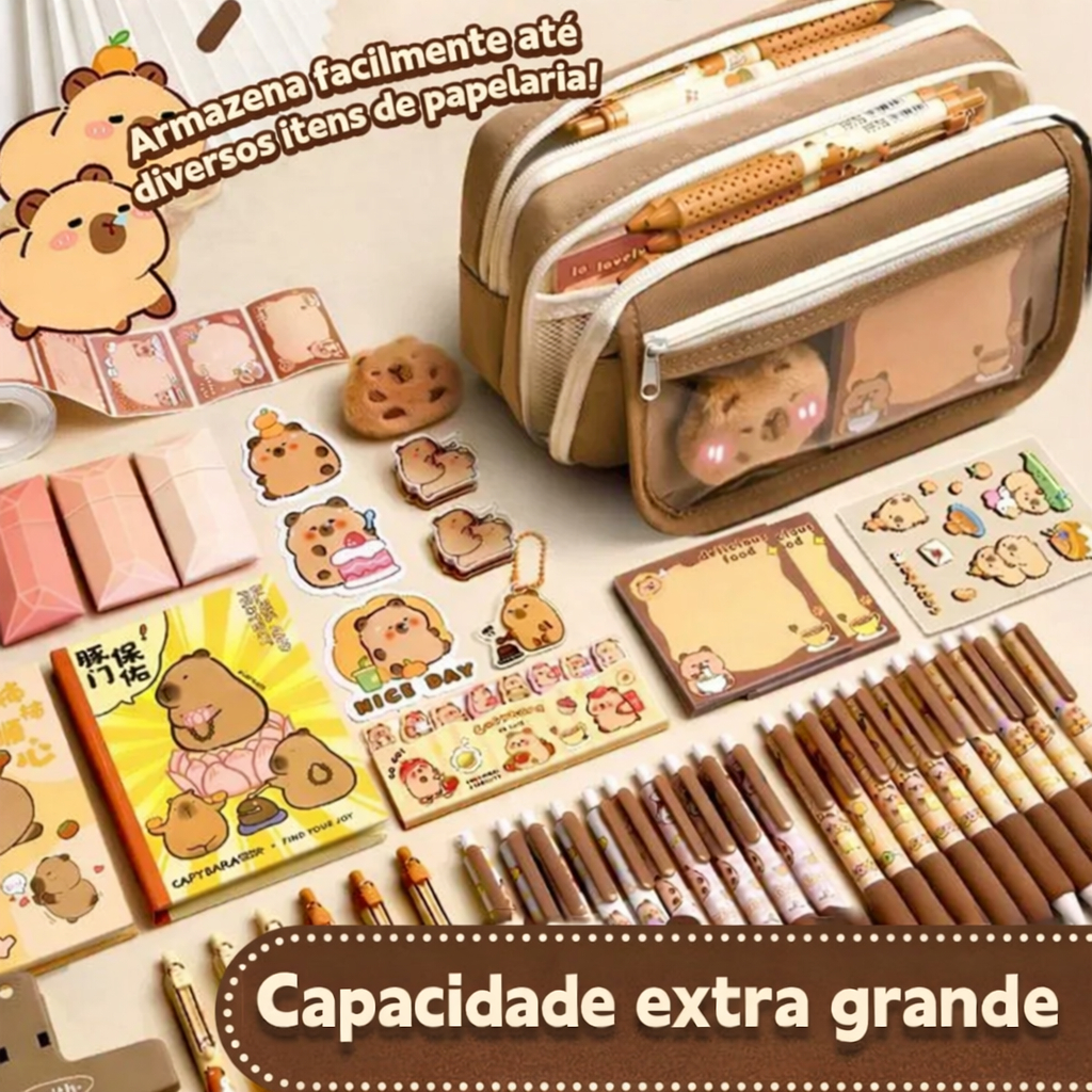 Estojo de Lápis capivara grande capacidade impermeável com 2 adesivos 1 Broche kawaii estilo coreano