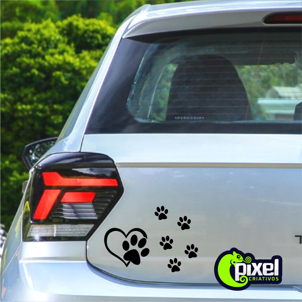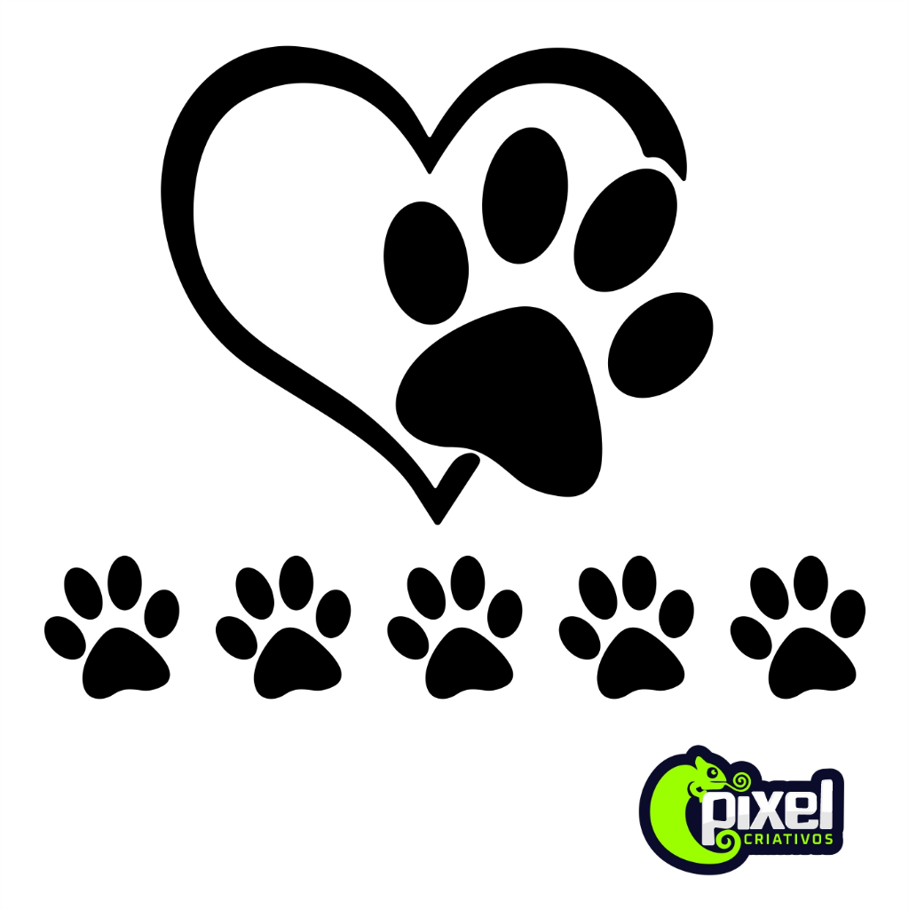 Adesivo Pata e Coração Cachorro - 6 adesivos - Carro, Moto, Parede, Vidro