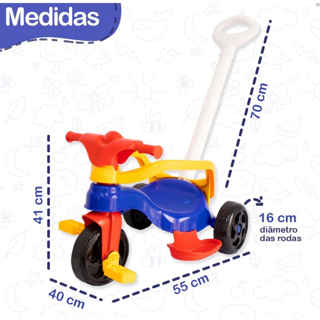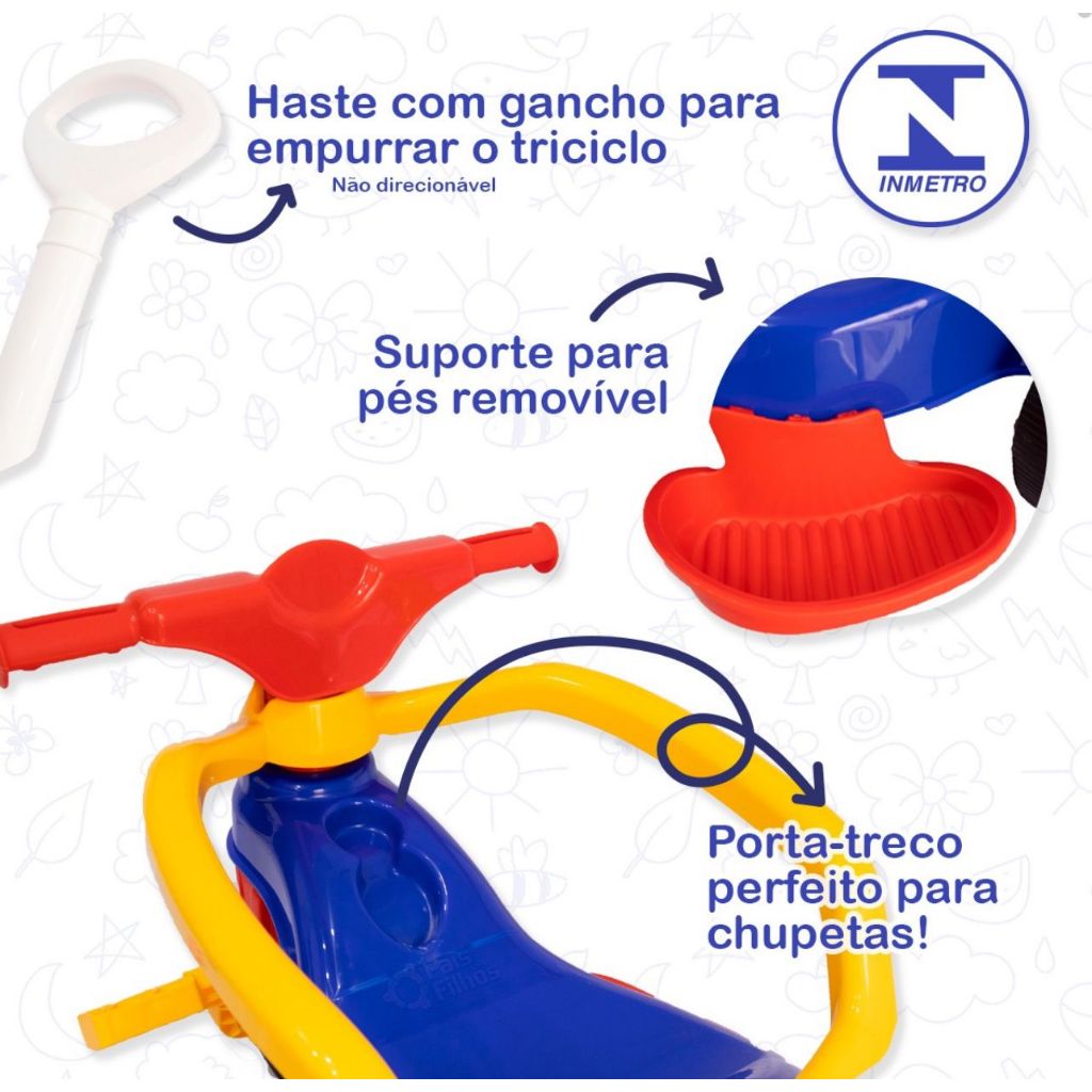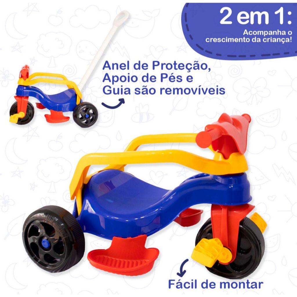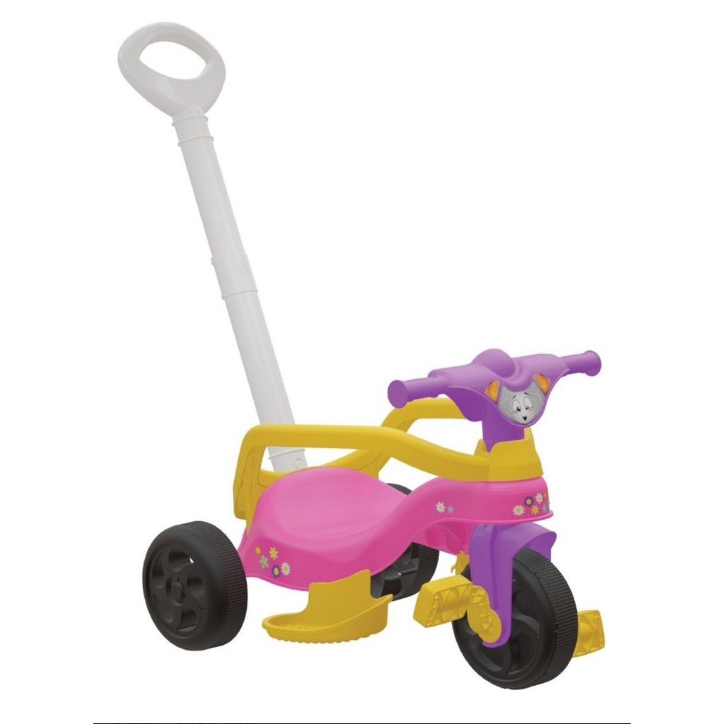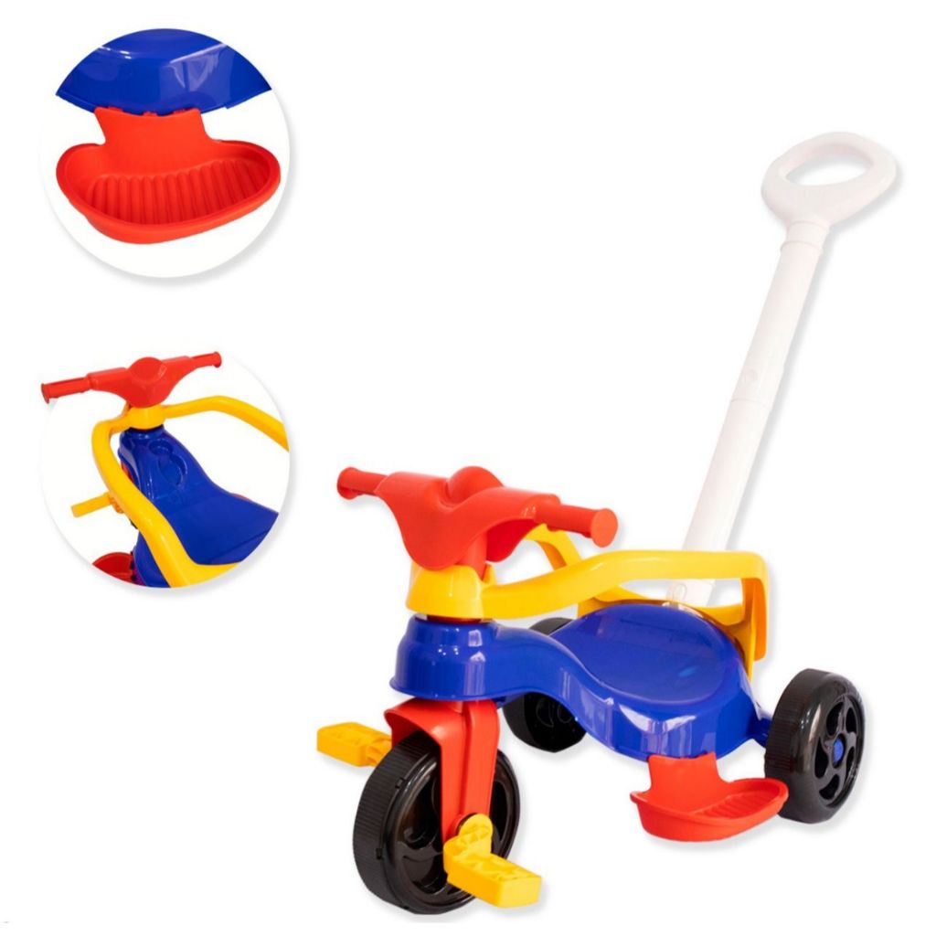 Motoca Vilotrol Triciclo Infantil Kemotoca Pais e Filhos Menino Menina Bebe Empurrador Pedal Proteção Lateral inmtro