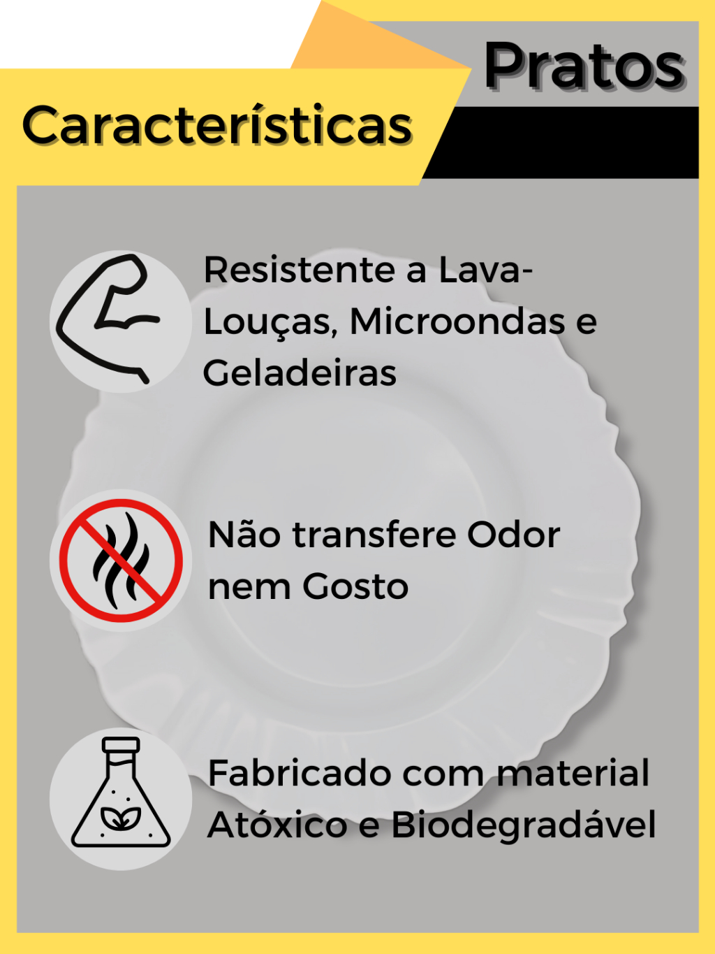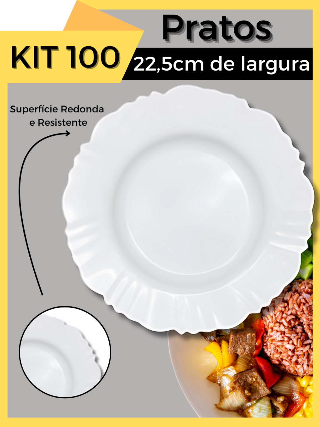 Kit 100 Pratos Pétala Plastico Redondo Fundo Resistente