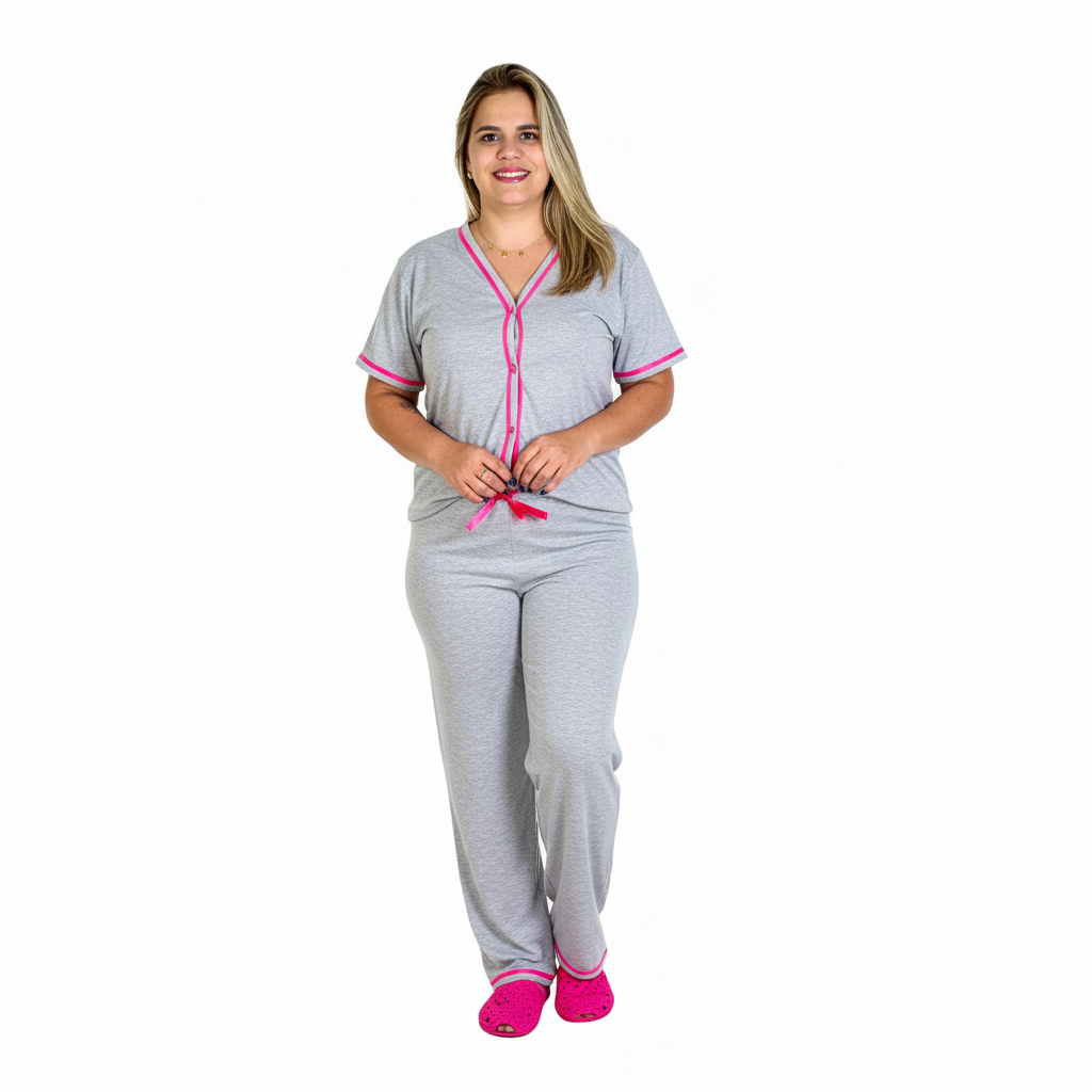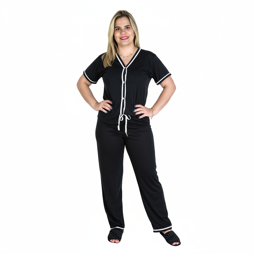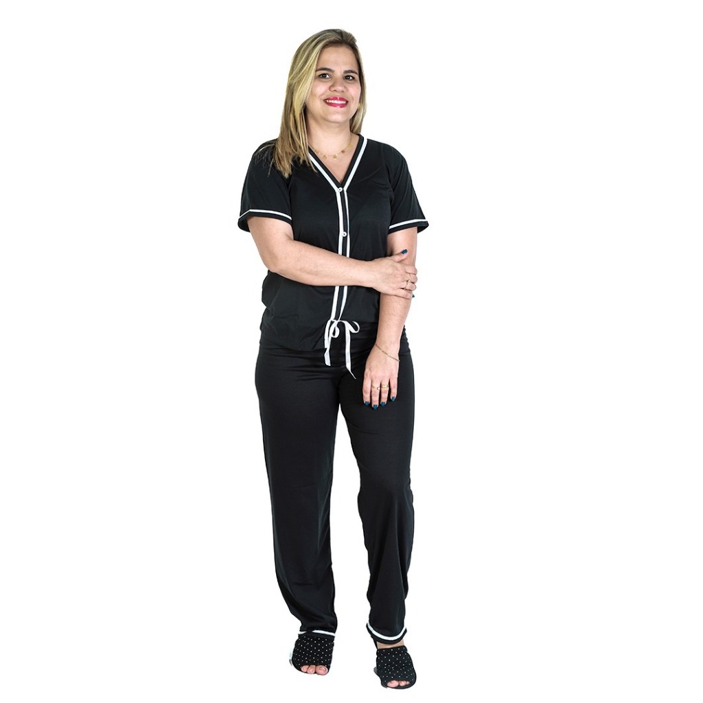 Pijama Americano Blusa com Botões e Manga Curta com Calça