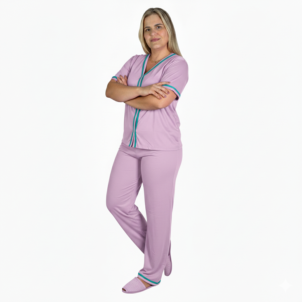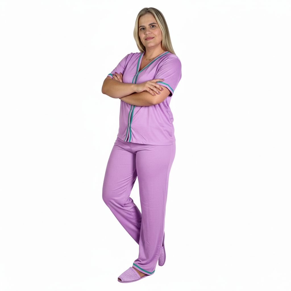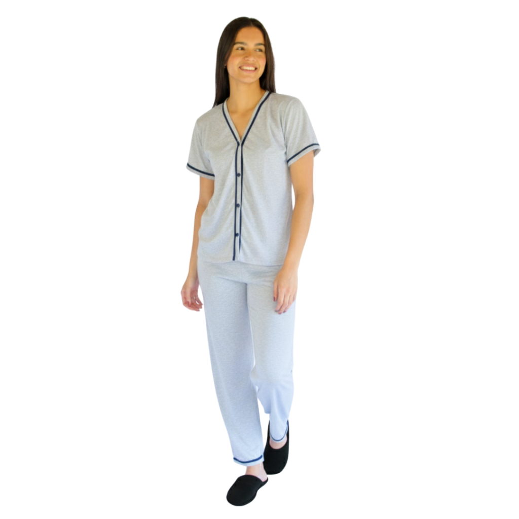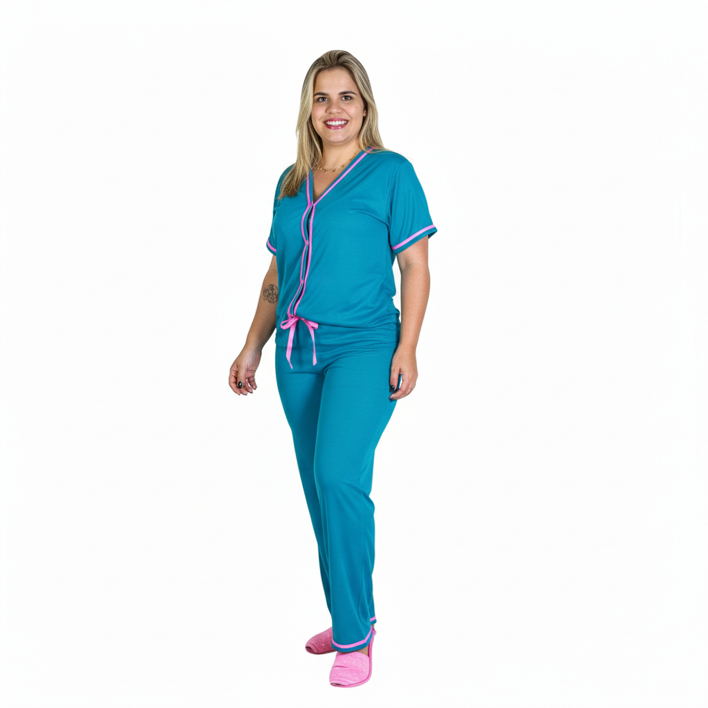 Pijama Americano Blusa com Botões e Manga Curta com Calça