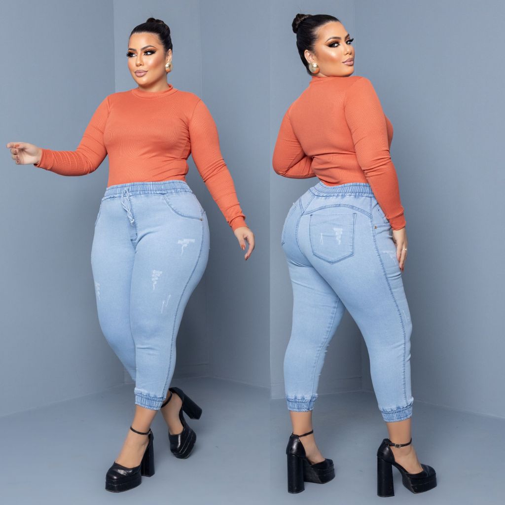 calça jeans elástica feminina plus size joguer cós alto modelo levanta bumbum qualidade premium