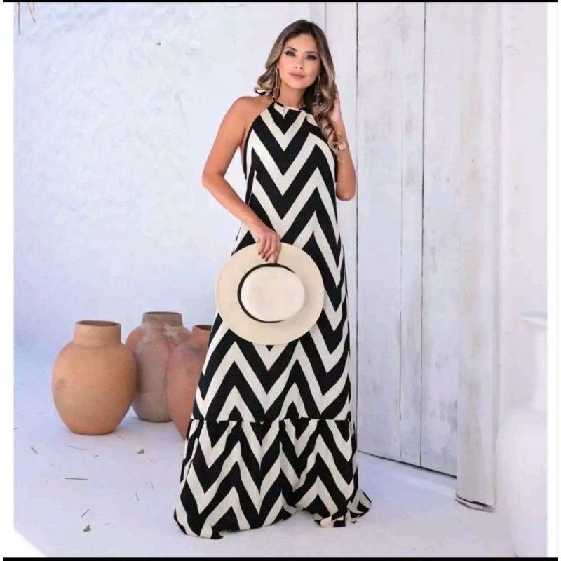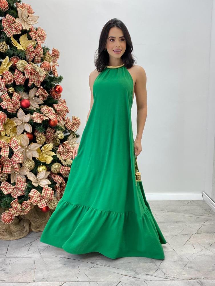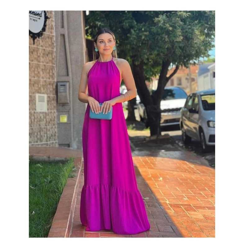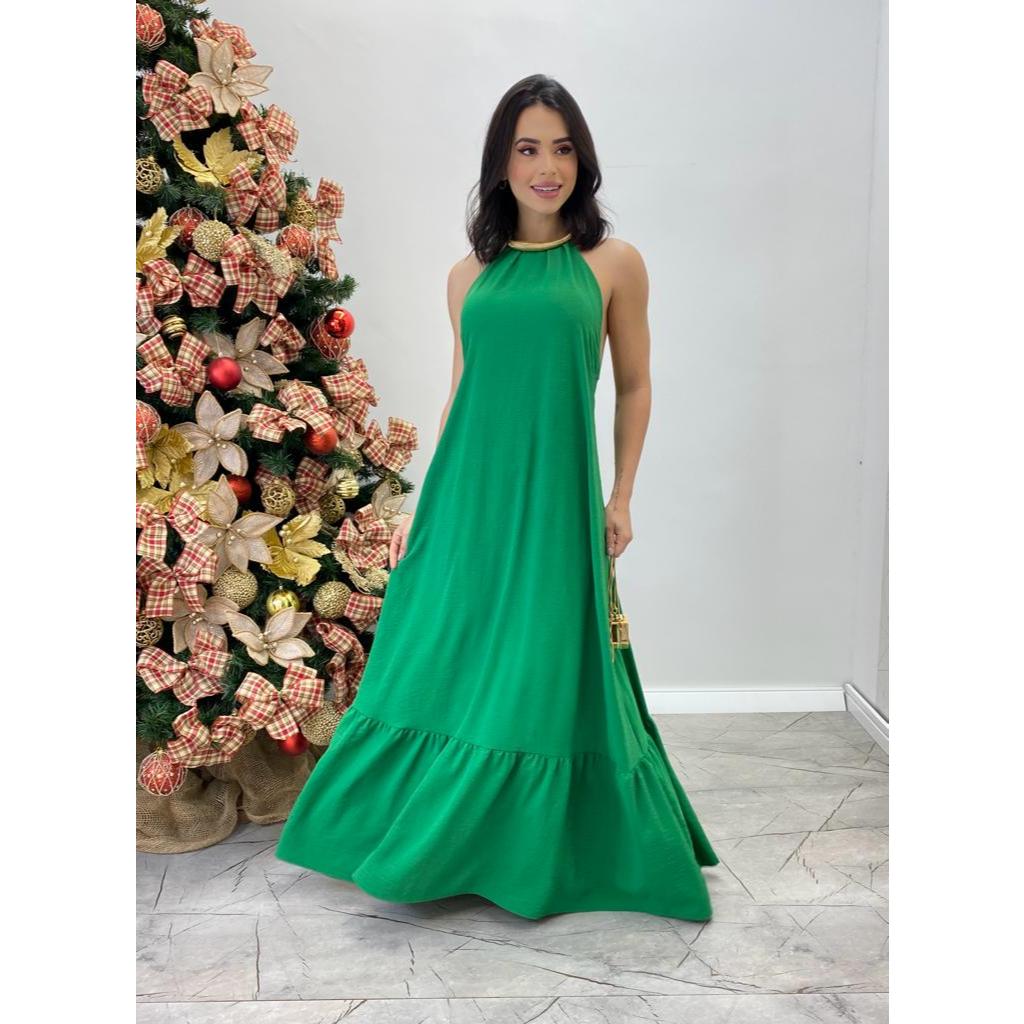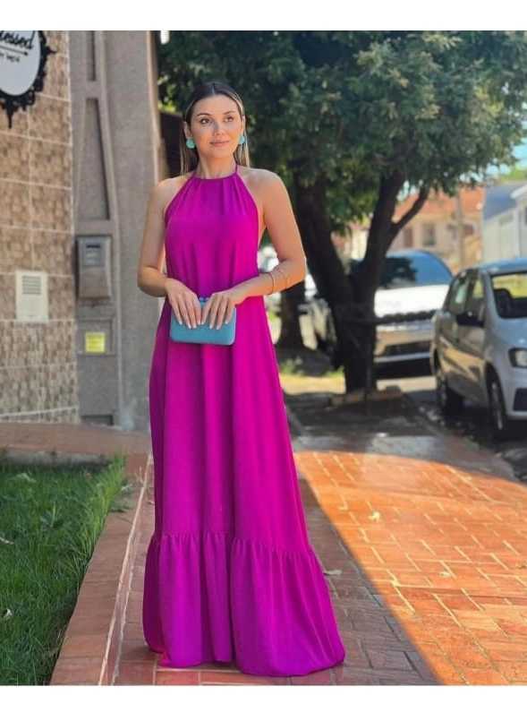 Vestido Longo Feminino Frente Unica Costas Nuas Listrado Com Bojo Tendencia e LISO PRETO,VERDE,FUCCIA