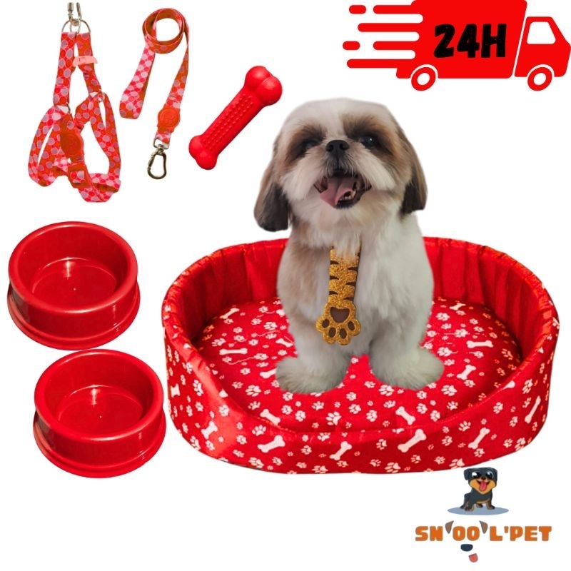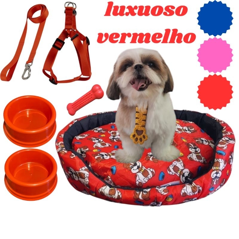 Kit Para Cachorro Luxuoso Pequeno Cama Pet Comedouro Para Cachorro
