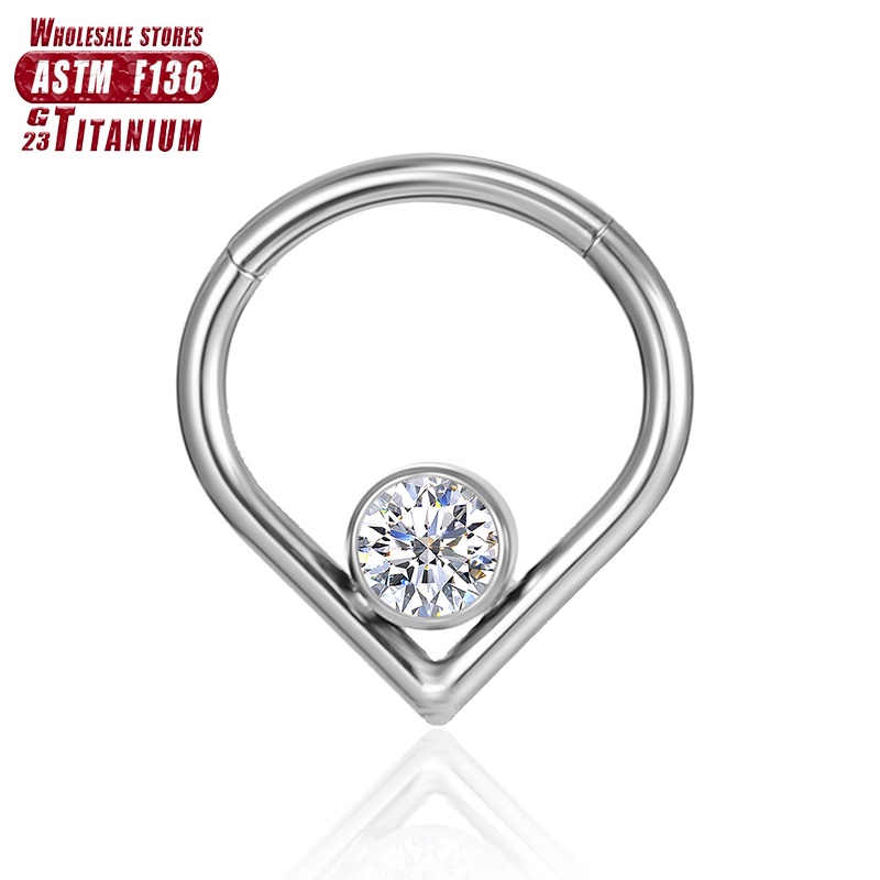 Clicker Tragus Cartilage Piercing Septum Segmento De Dobradiças Anéis De Nariz Em Forma De Gota Para Brincos Femininos Zircon F136 Titanium Perforated Helix Sexy Body Jewelry