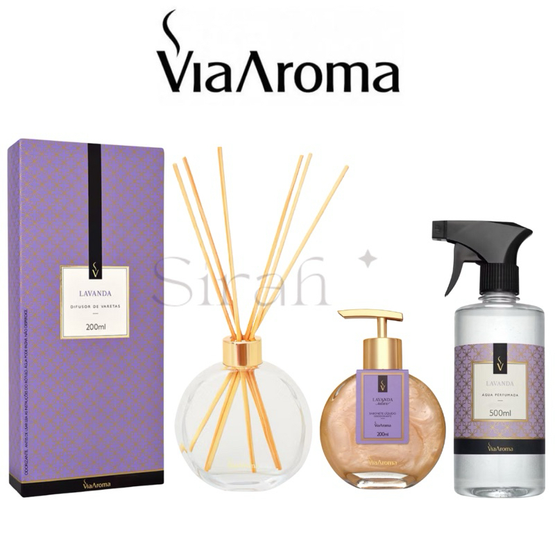 Kit Via Aroma Casa Perfumada Difusor de Varetas + Sabonete + Água Perfumada