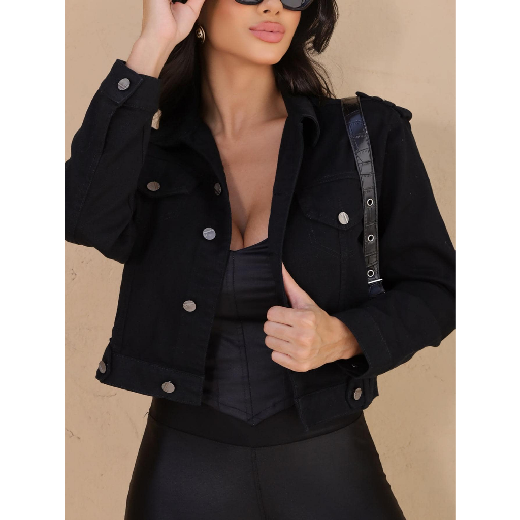 Jaqueta Jeans Feminina Com Botões Verde Militar Bege