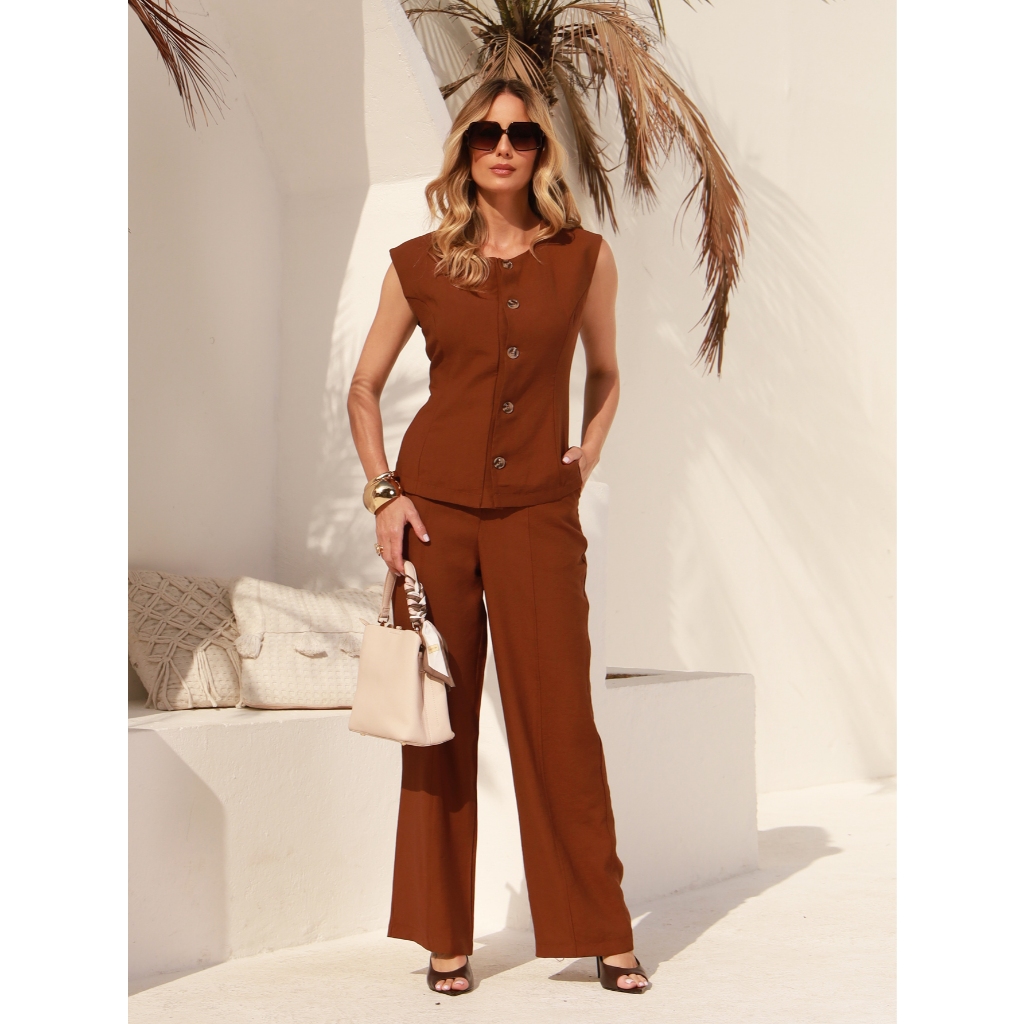Conjunto Regata e Calça Pantalona Social Com botão Marrant Branco Tem Forro Tendência Feminina Moda blogueira Primavera