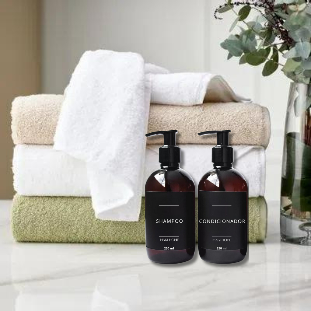 KIT 4 FRASCOS AMBAR 250ml PARA SHAMPOO CONDICIONADOR HIDRATANTE E SABONETEIRA DISPENSER